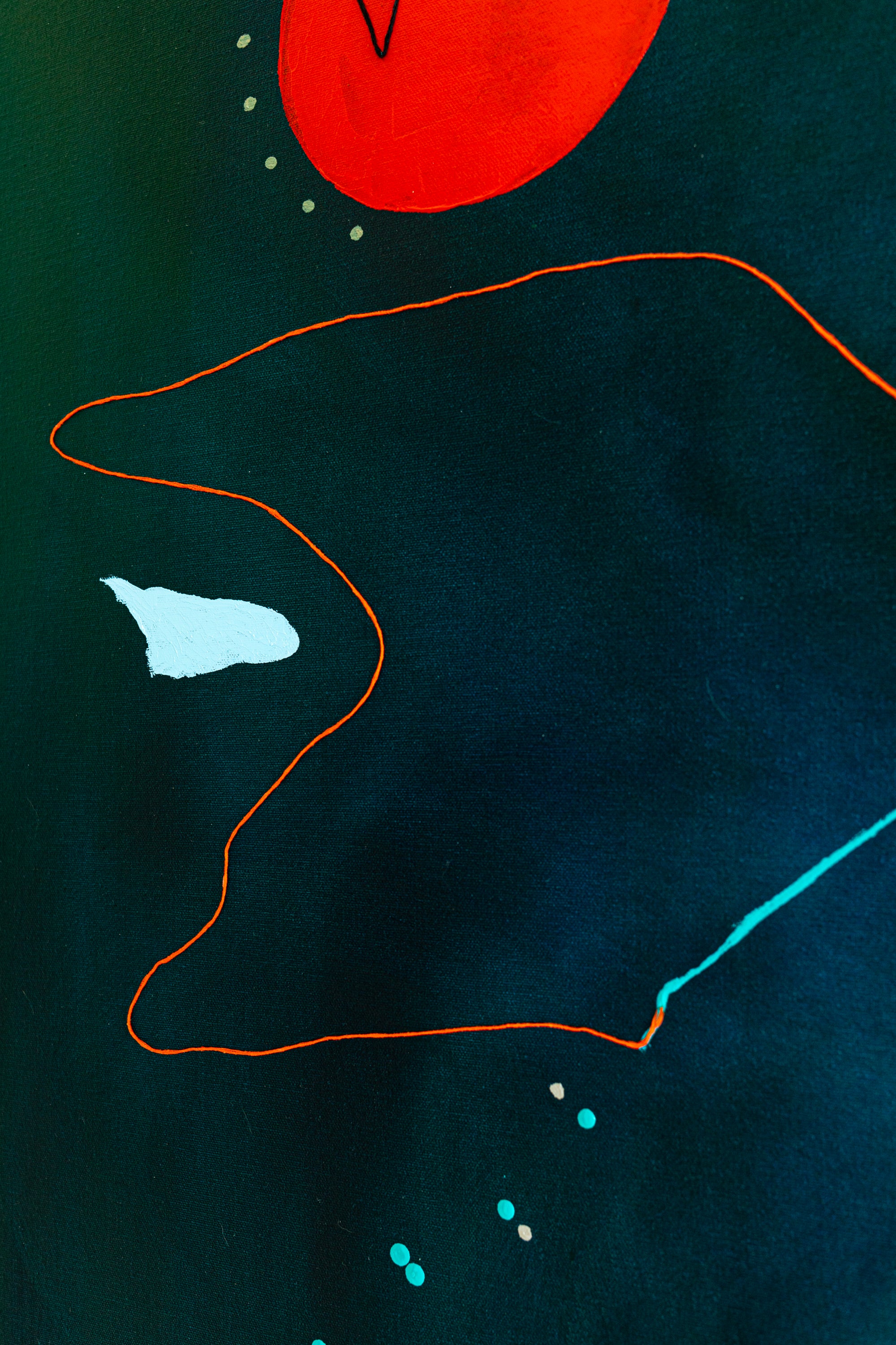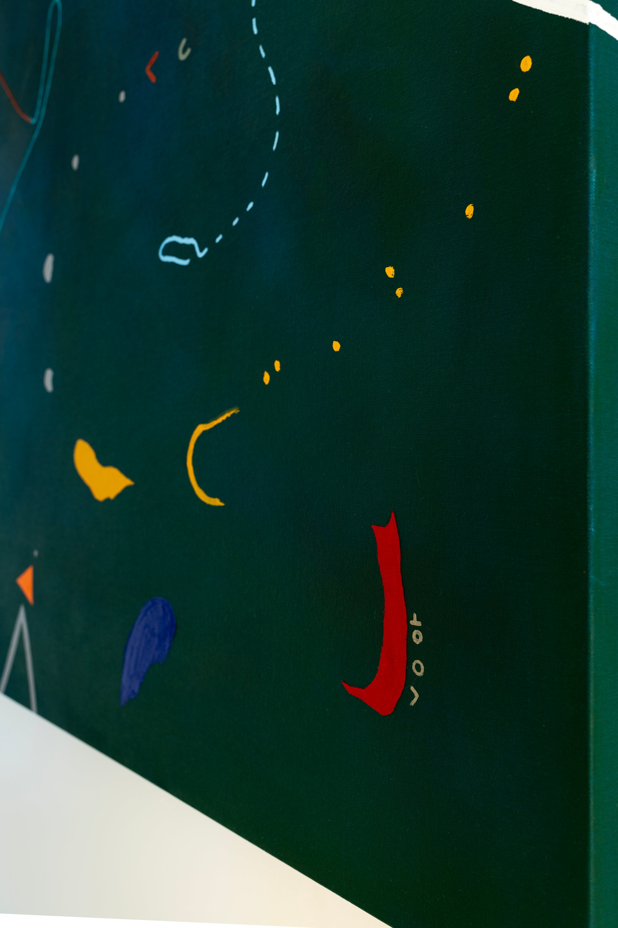 "Ataraxy of the Abyss" is a modern abstract painting, a meditation on the uncharted depths of the abyss. Harnessing oil paint and mixed media, the artist deftly creates an exploration into the sublime unknown. A bold palette of deep green interplays with fleeting hints of brighter hues, symbolizing fleeting moments of light in the all-encompassing abyss. It's a thought-provoking piece, an abstract representation of freedom and the mystery inherent in the unexplored. Like the abyss itself, the painting invites viewers into a world both mysterious and beautiful, offering a visually striking conversation piece for any modern art collection.
