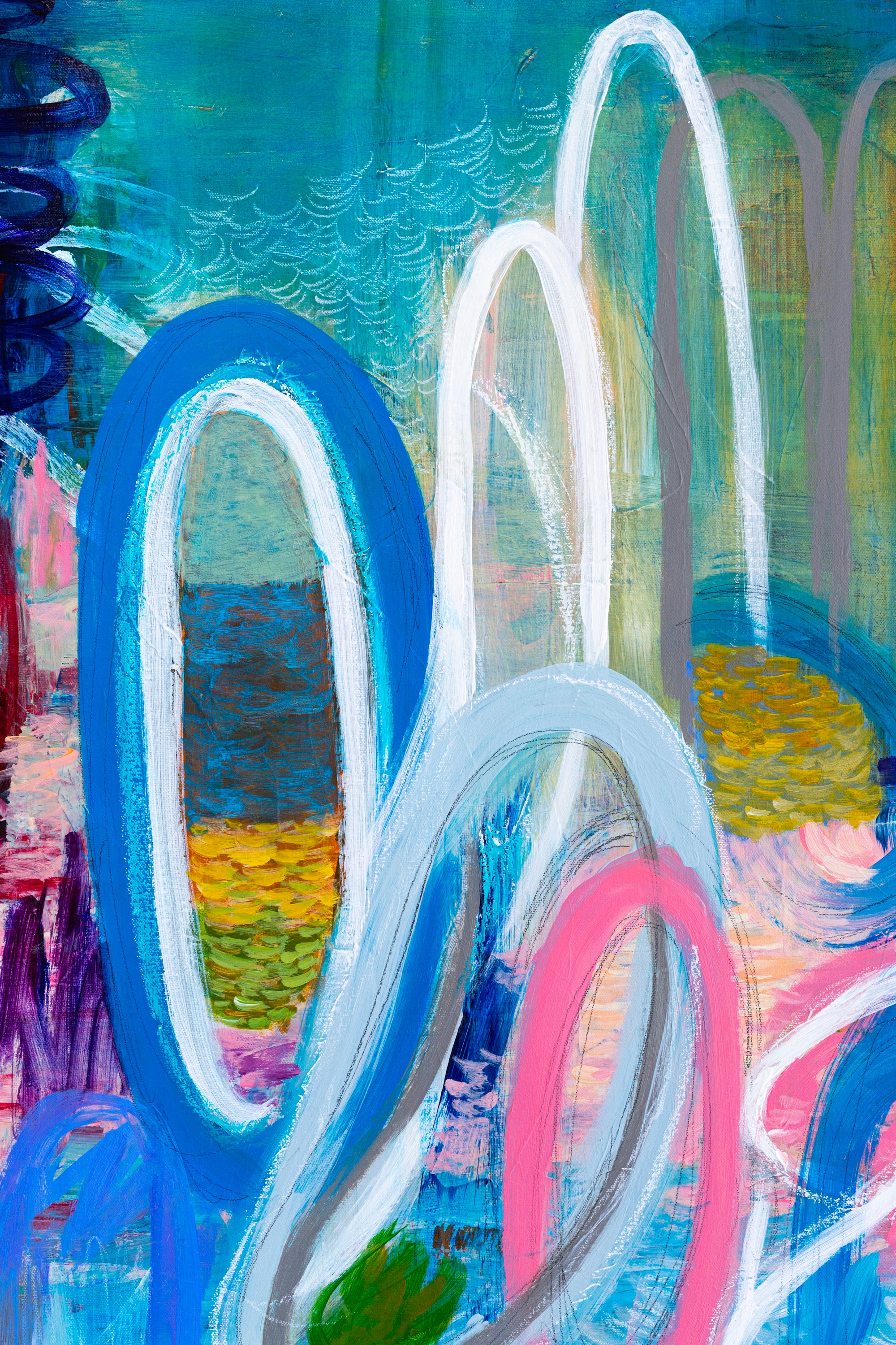 - Acrylic painting, oil pastel, pencil on canvas