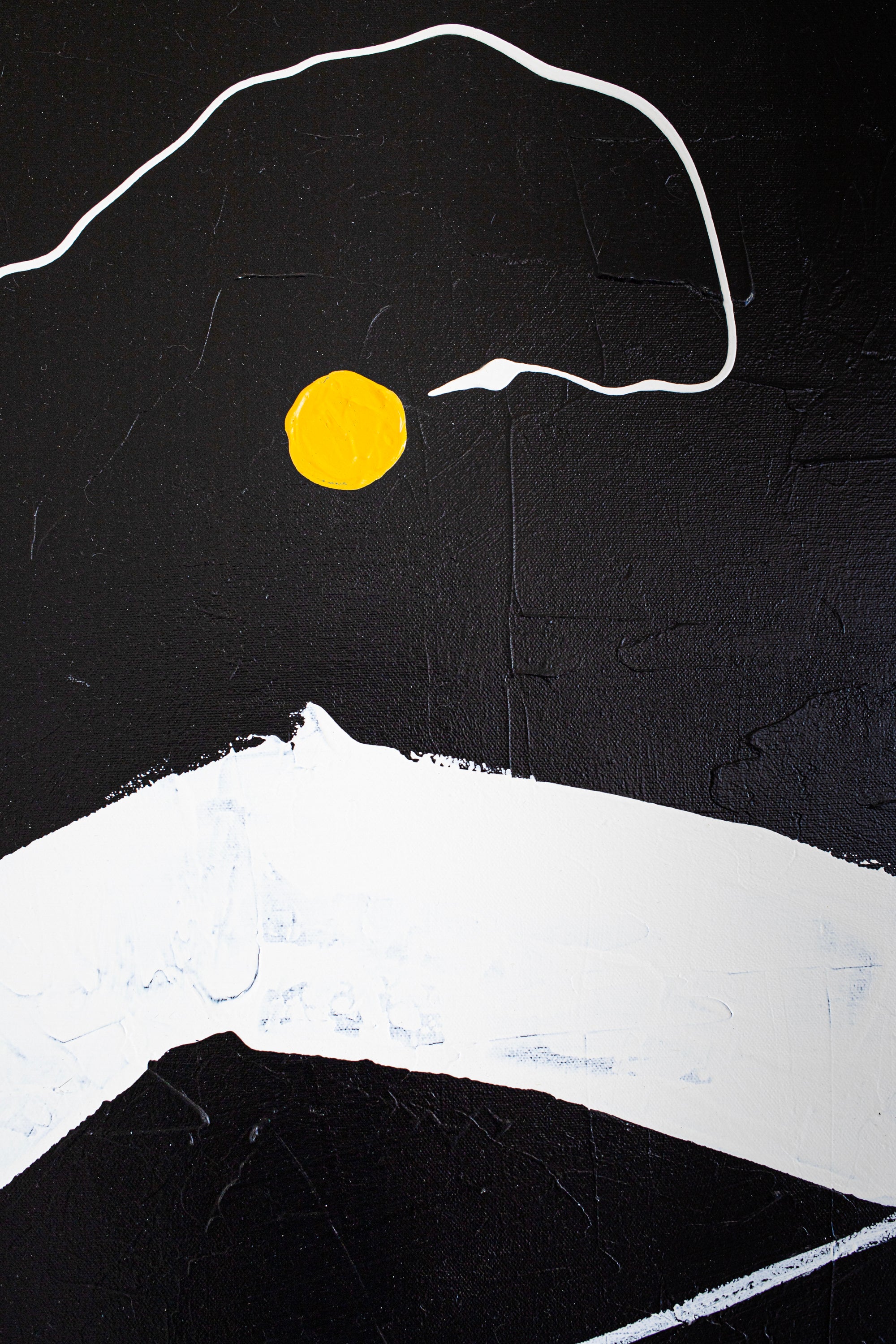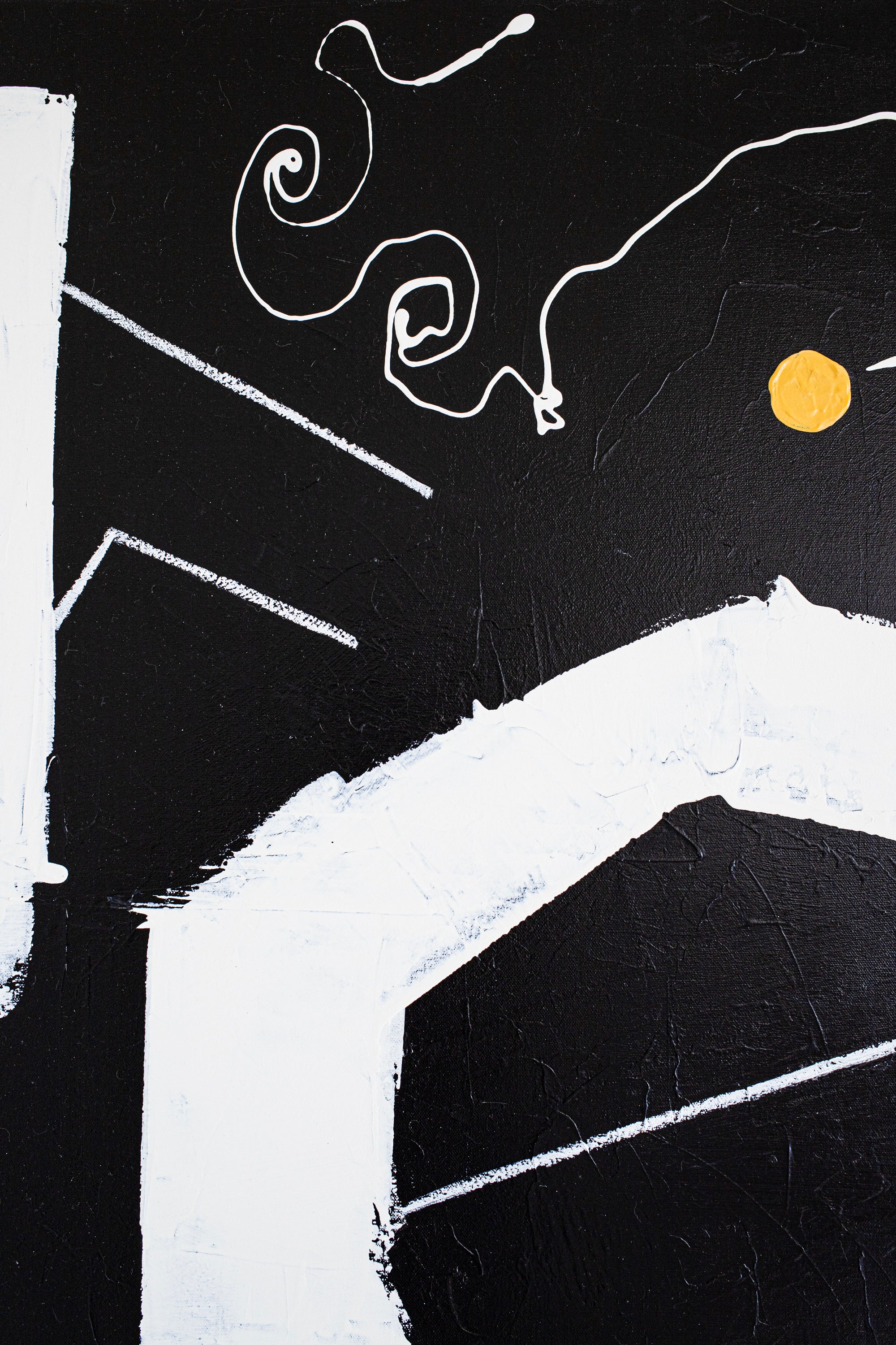 "In Absentia" is a striking modern abstract painting, meticulously crafted in black and white. It is more than a visual experience; it's a profound exploration of absence, a theme that resonates deeply and universally. The artist's bold approach transforms the canvas into a space where emptiness takes on tangible form. The contrast between black and white intensifies the sense of void, creating a powerful visual metaphor for something missing yet ever-present. Abstract lines, shapes, and textures interact to evoke feelings of longing and introspection. Yet within the stark monochrome palette lies a surprising warmth and depth, a human touch that connects the viewer to the artist's vision. It is a painting that challenges and inspires, a compelling piece of modern wall art that invites one to ponder the complex nature of absence and presence in our lives.