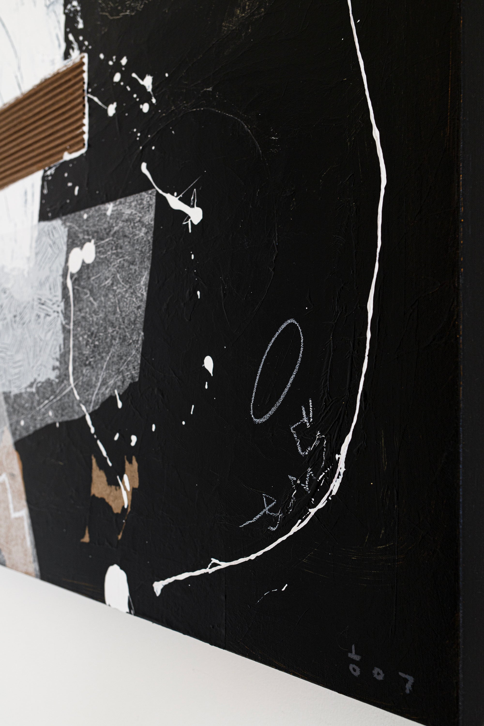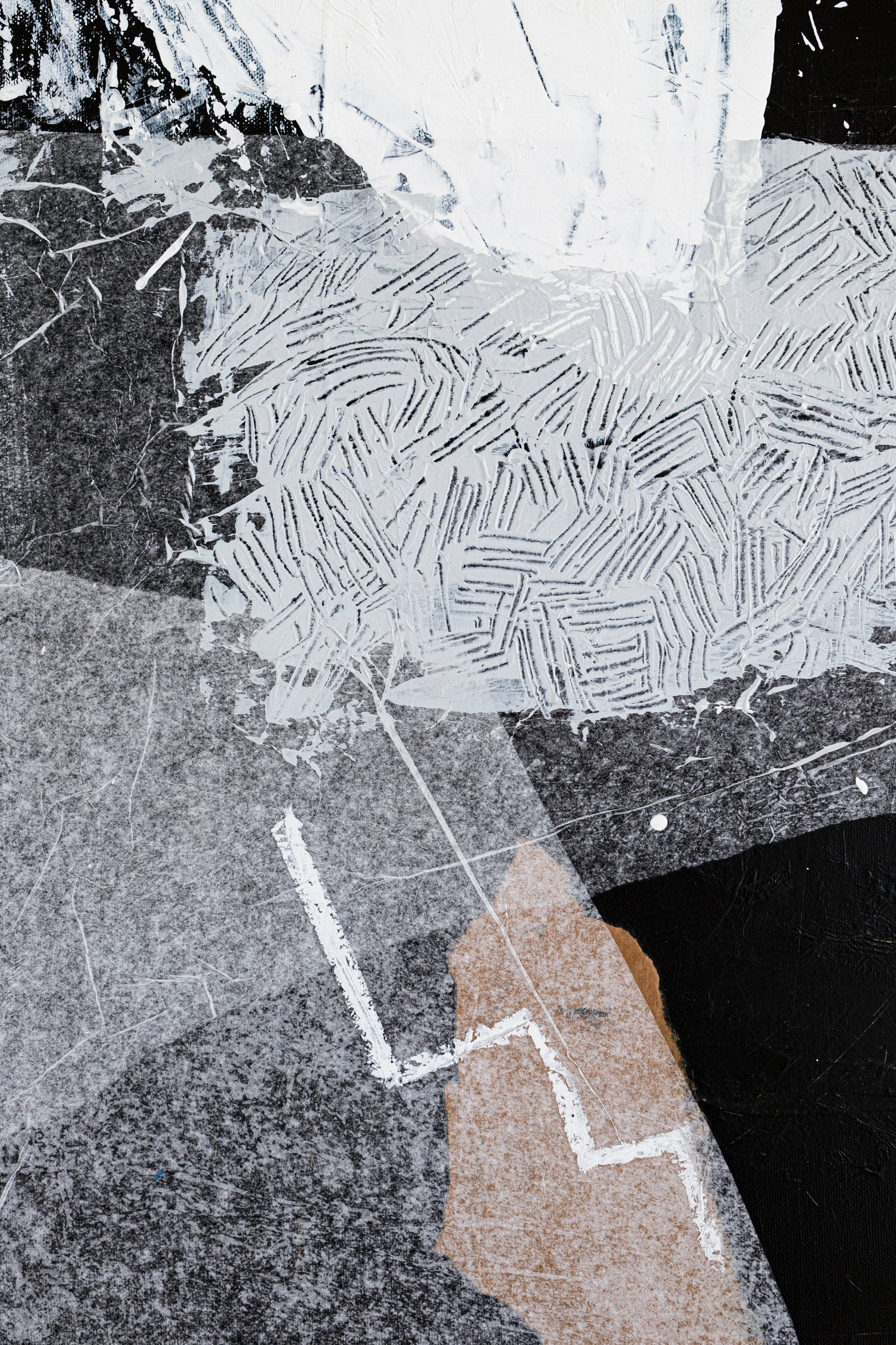 "The Night Scene", a modern abstract painting that encapsulates the beauty of nocturnal tranquility. Crafted with a minimalist black and white palette, this mixed media painting mirrors the quiet elegance of the night. The simplicity of the composition coupled with the intricate play of light and dark hues draws a parallel with the calm yet intriguing charm of a nighttime landscape. This artwork isn't just about depicting a scene, but also about invoking emotions associated with the serene solitude of nighttime. Elevate your space with "The Night Scene", and invite an atmosphere of quiet contemplation and sophistication into your living environment.