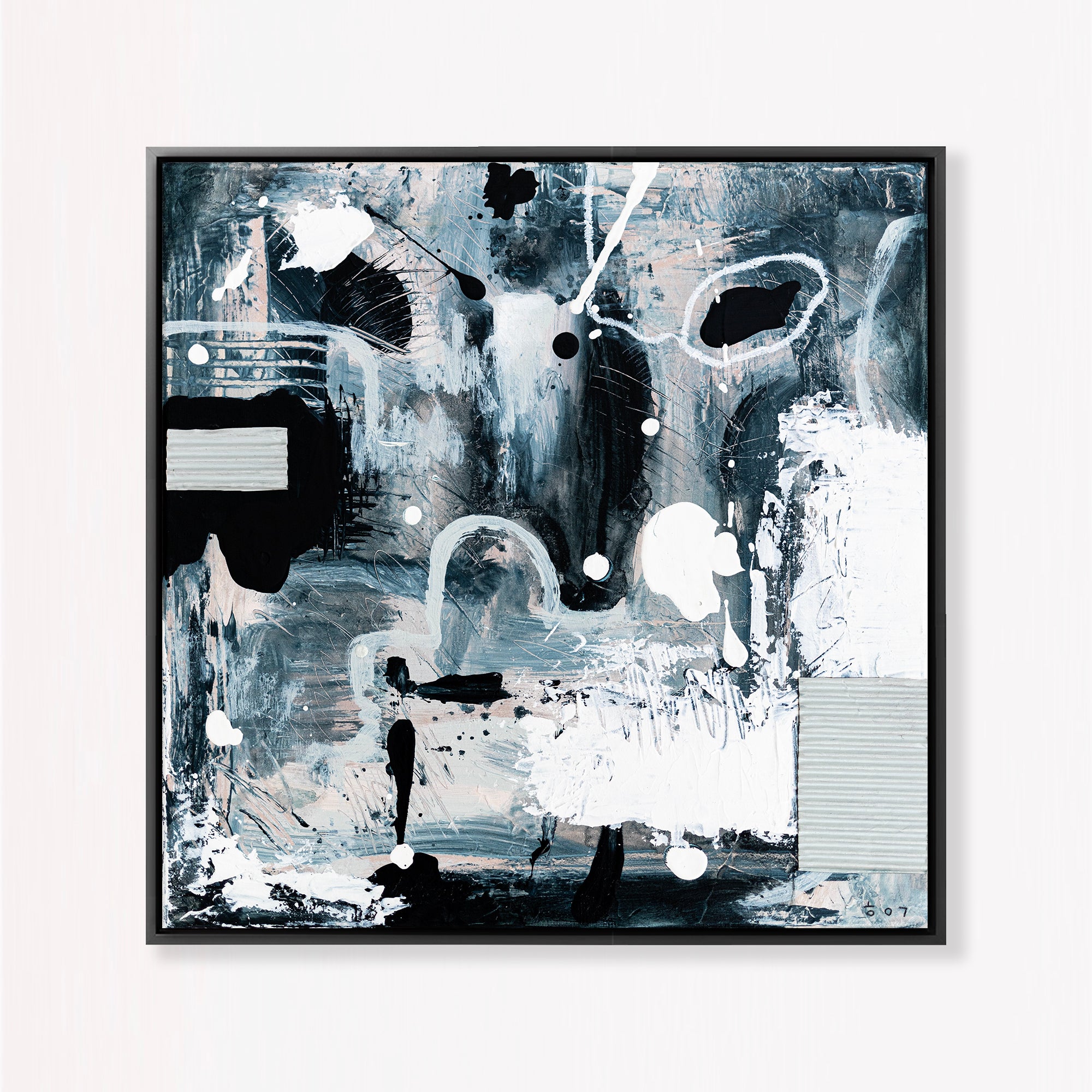 “Vagus II” was hand-painted in September 2025 and framed in an black floater frame (overall 17"x17" / 43x43cm, depth 1.5" / 3cm). The blue and turquoise palette radiates a sense of lightness and balance, blending contemporary art with soft textures. Subtle tonal shifts and layered brushwork create an elegant visual rhythm, giving the piece a serene and modern energy. Signed on both the front and back and accompanied by a certificate of authenticity, this original art piece brings calm sophistication to living rooms, studios, or office spaces.