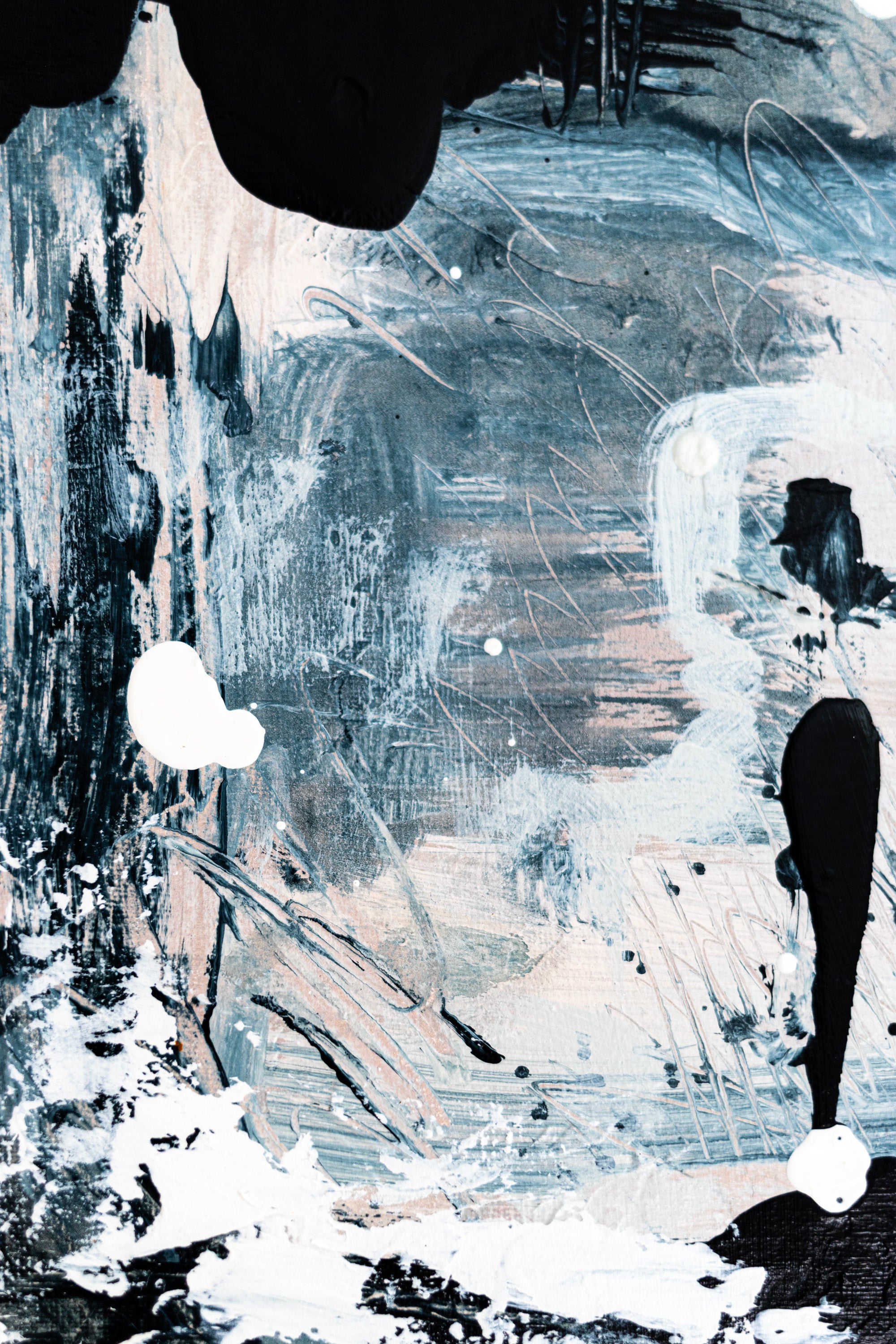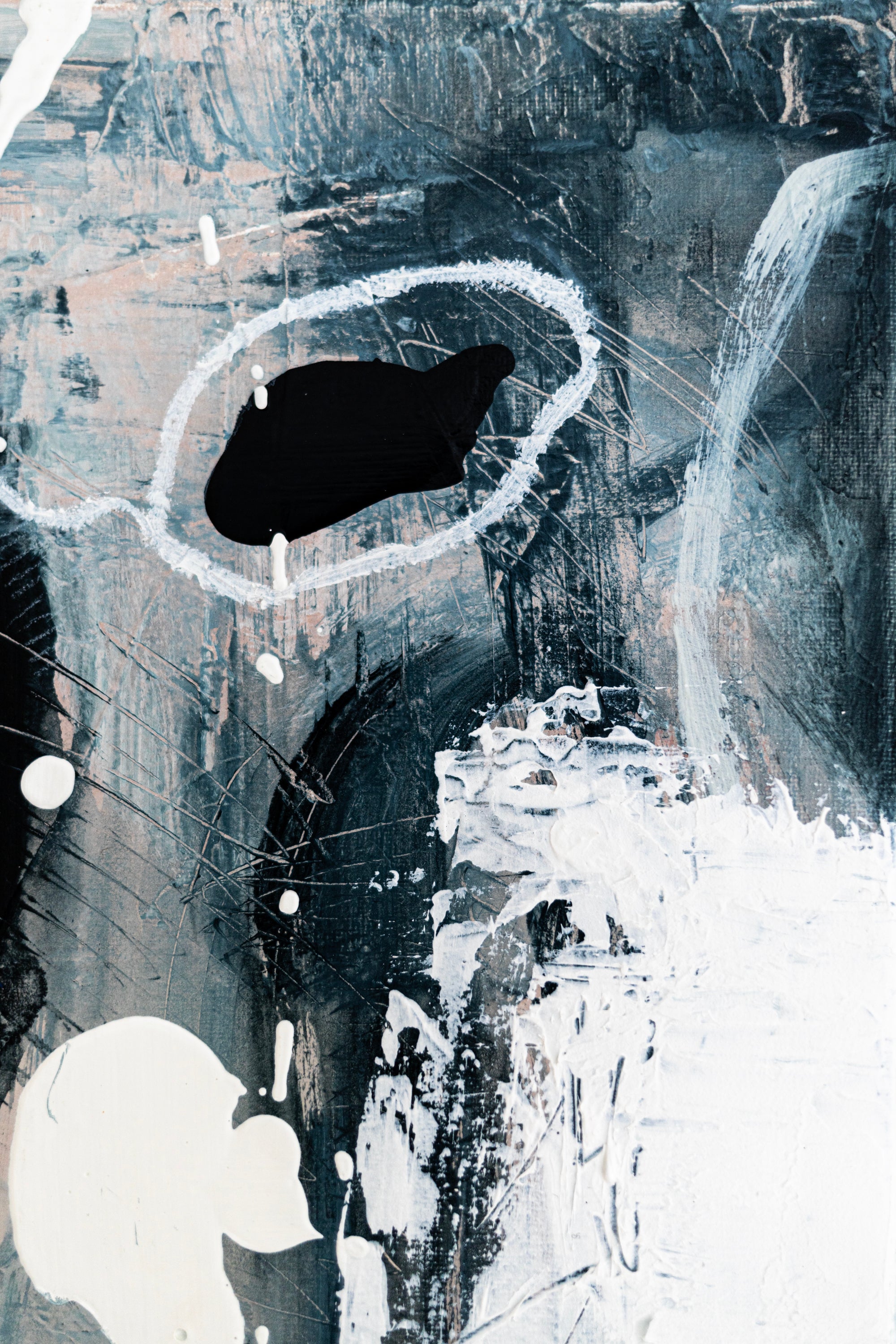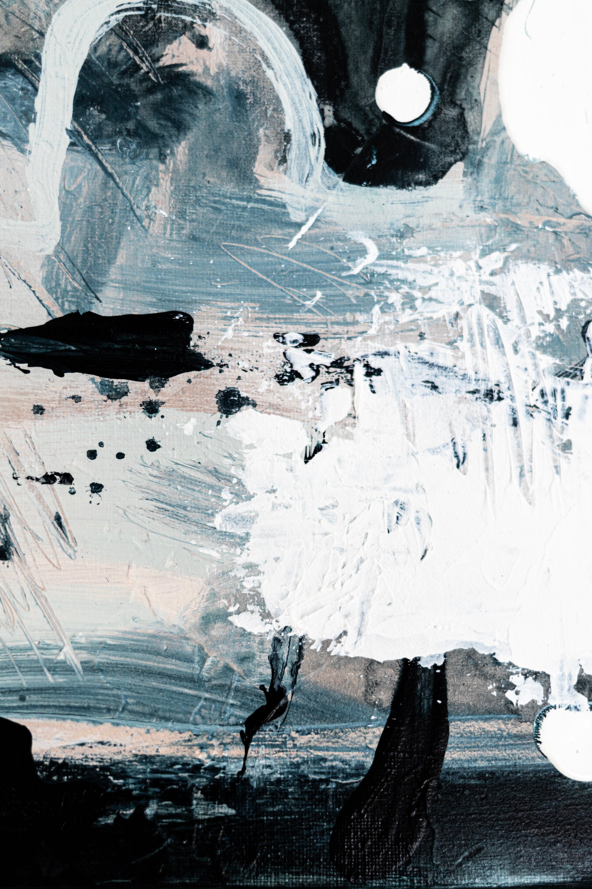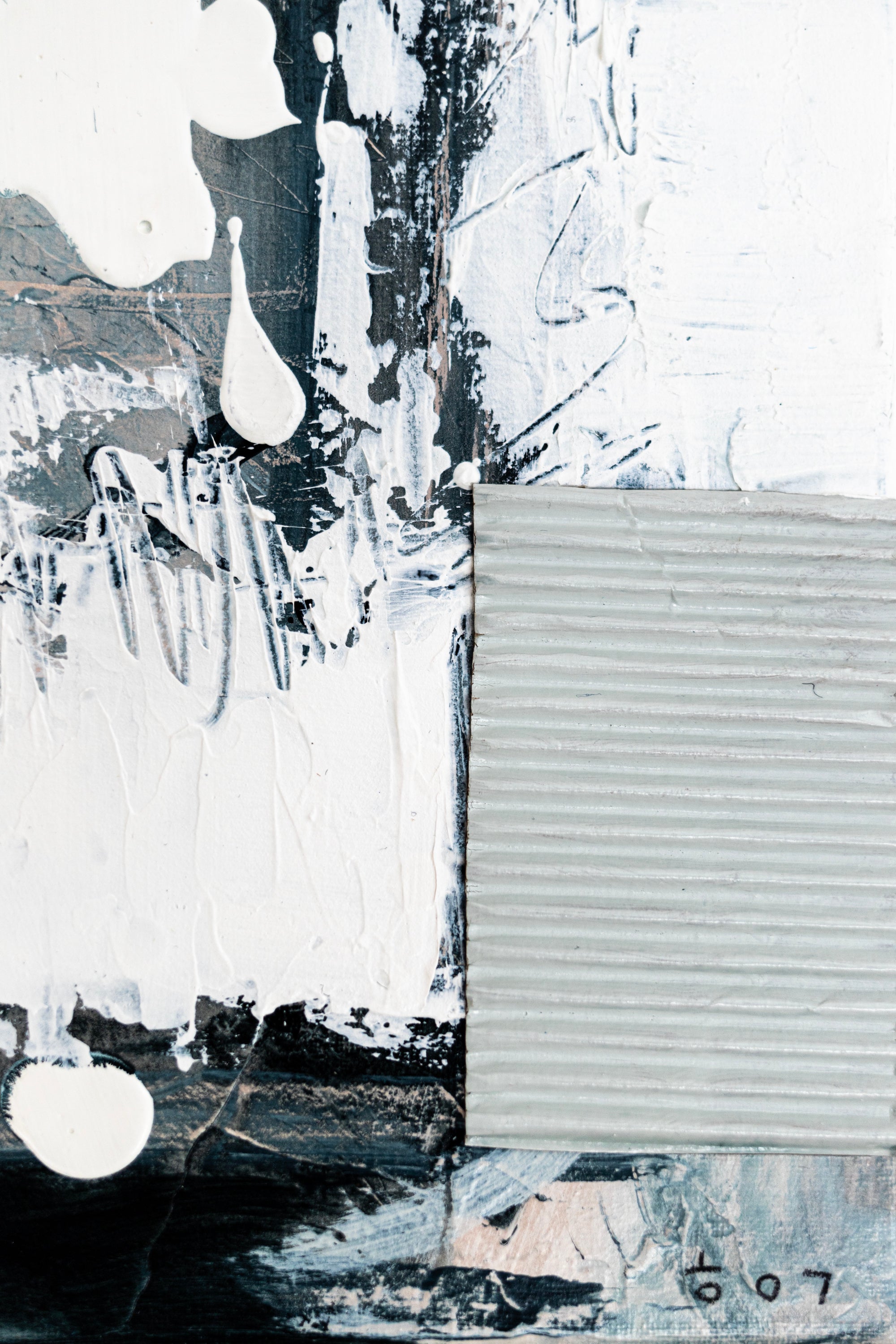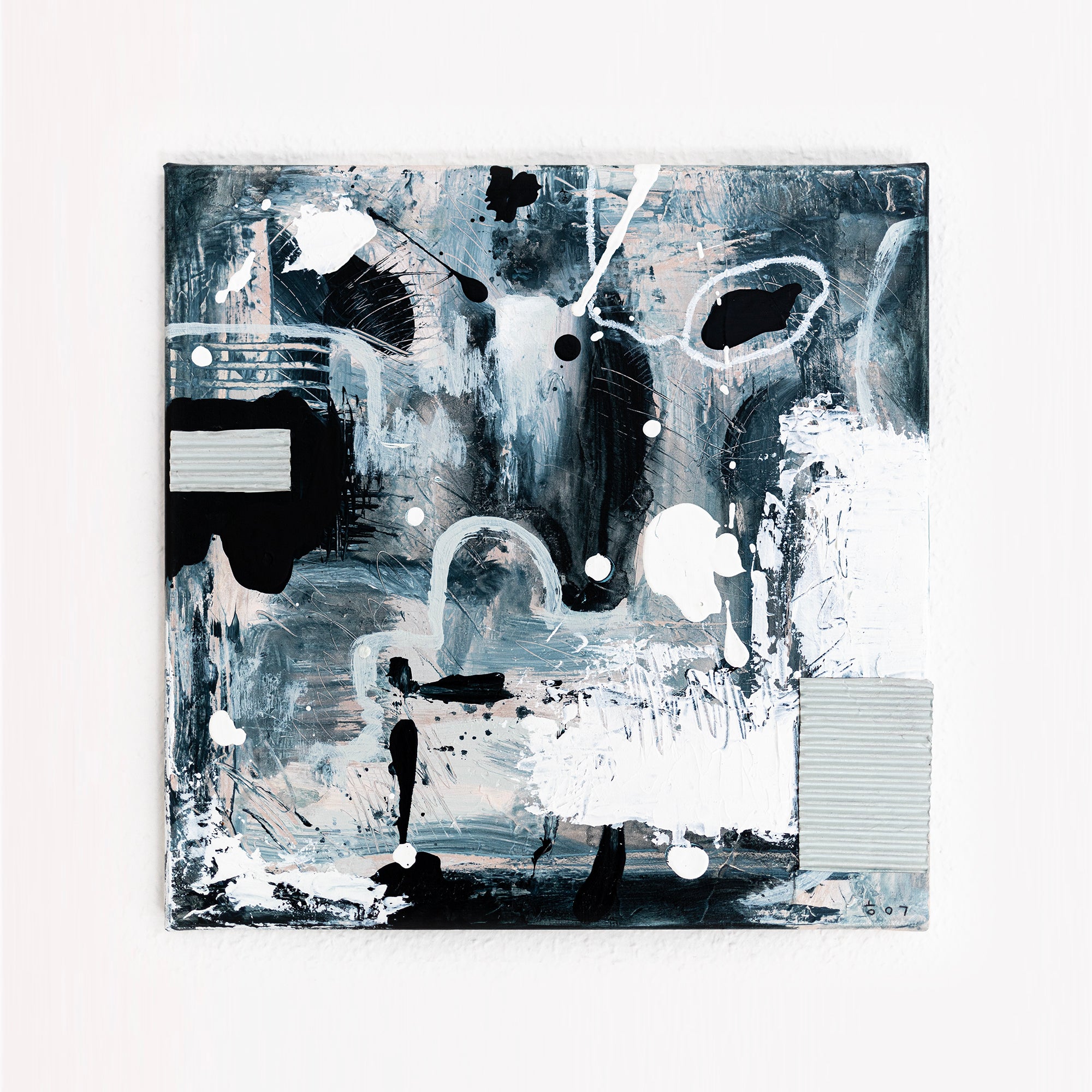 This abstract painting in mixed media on canvas (16"x16" / 40x40cm) is a vibrant modern wall art piece created with oil painting, acrylic, oil pastel, pencil, and mixed media. This original painting is a sophisticated abstract wall art, oil painting, acrylic painting and the essence of minimalist art, painted on high quality canvas.