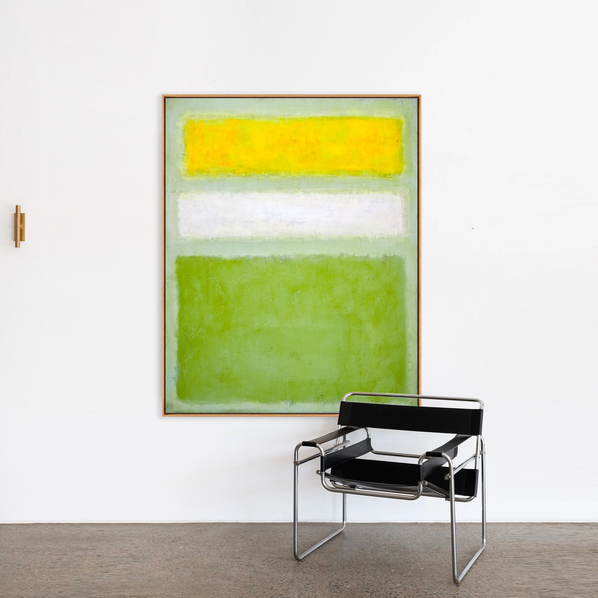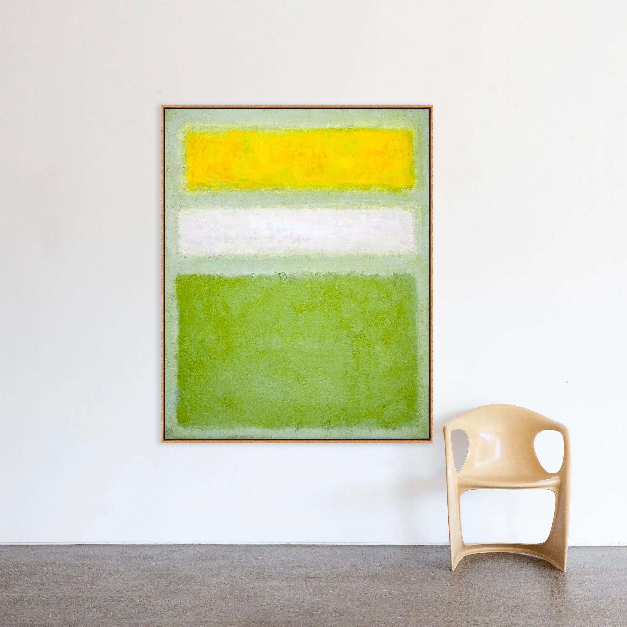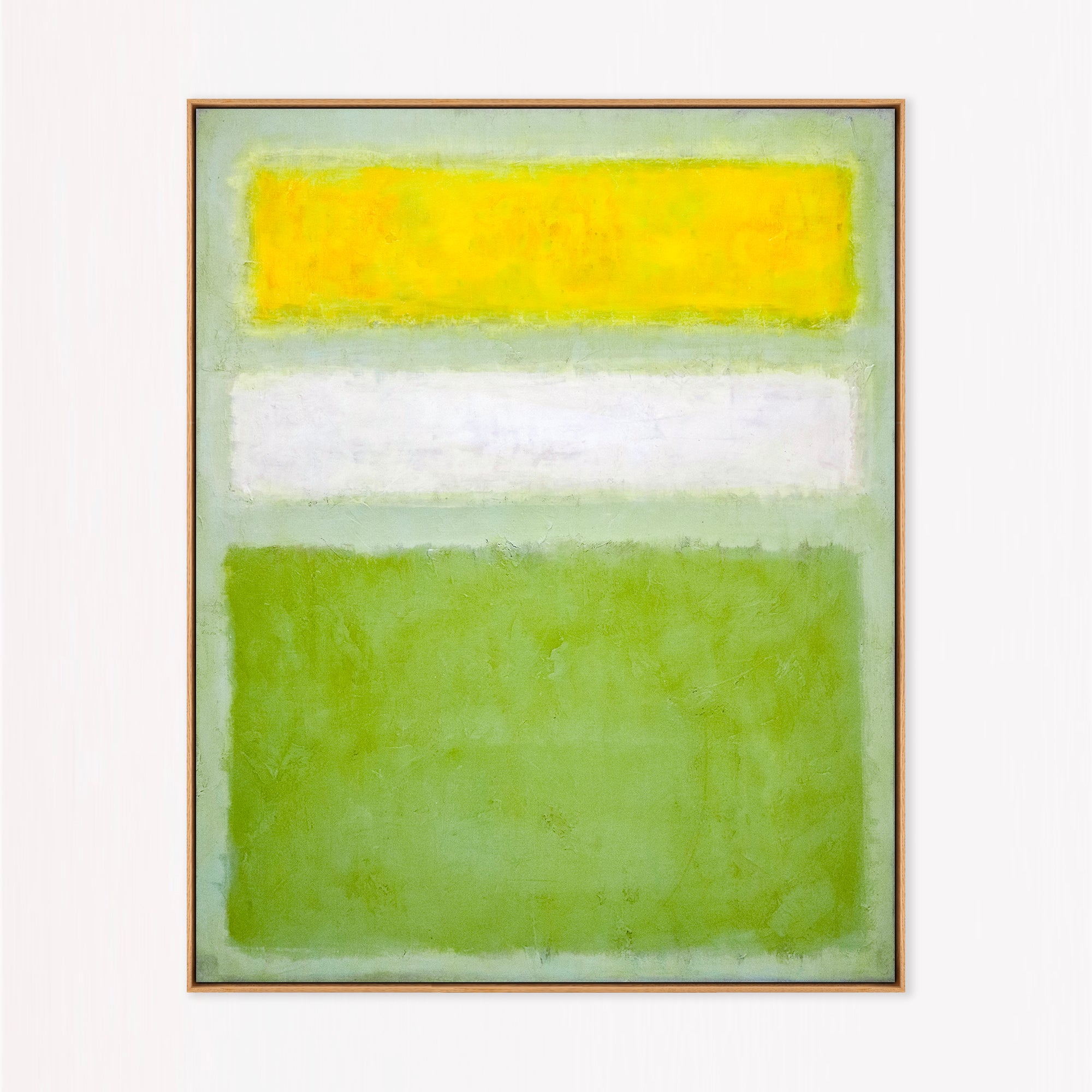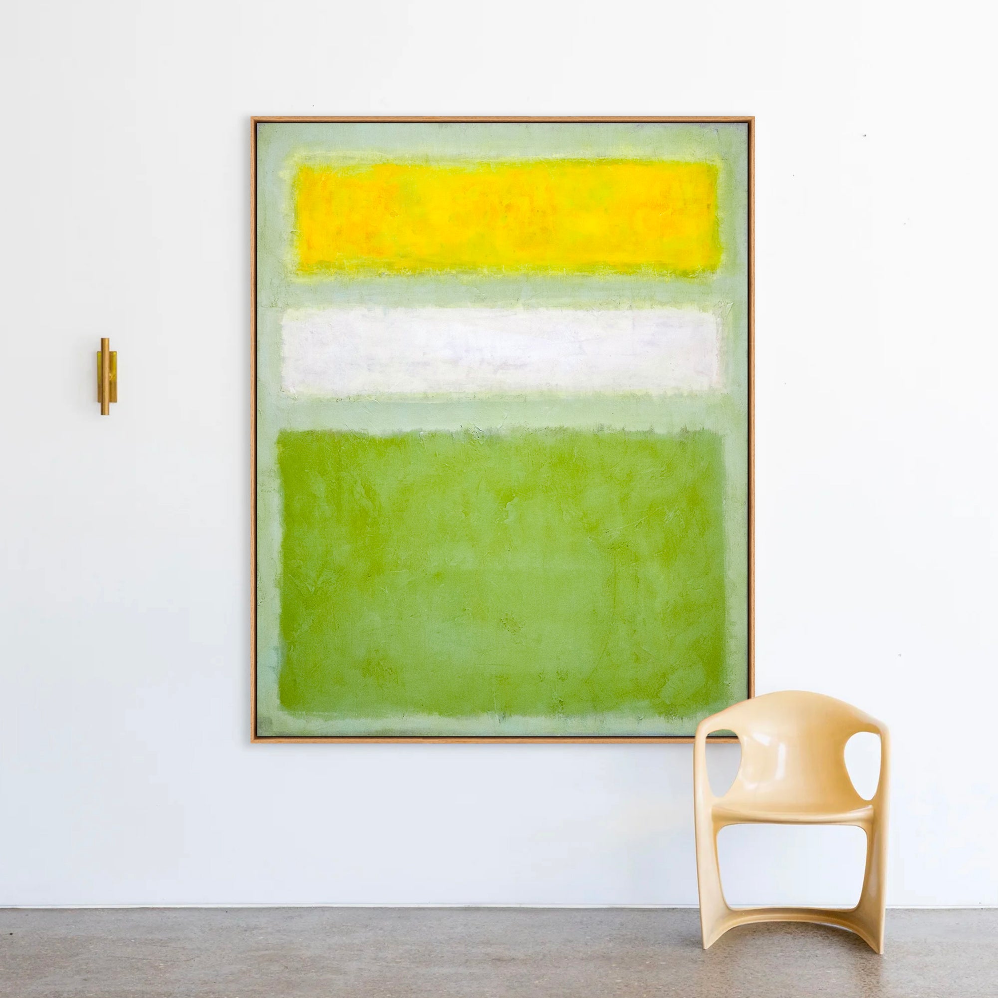 Rather than descending into emotional depth, the composition embraces calm and balance, translating nature into broad fields of color and subtle transitions. The restrained abstraction allows space for stillness and comfort, inviting the viewer to pause and breathe. Serene and harmonious, this modern abstract wall art brings the peaceful rhythm of a spring meadow into contemporary interiors with understated elegance.