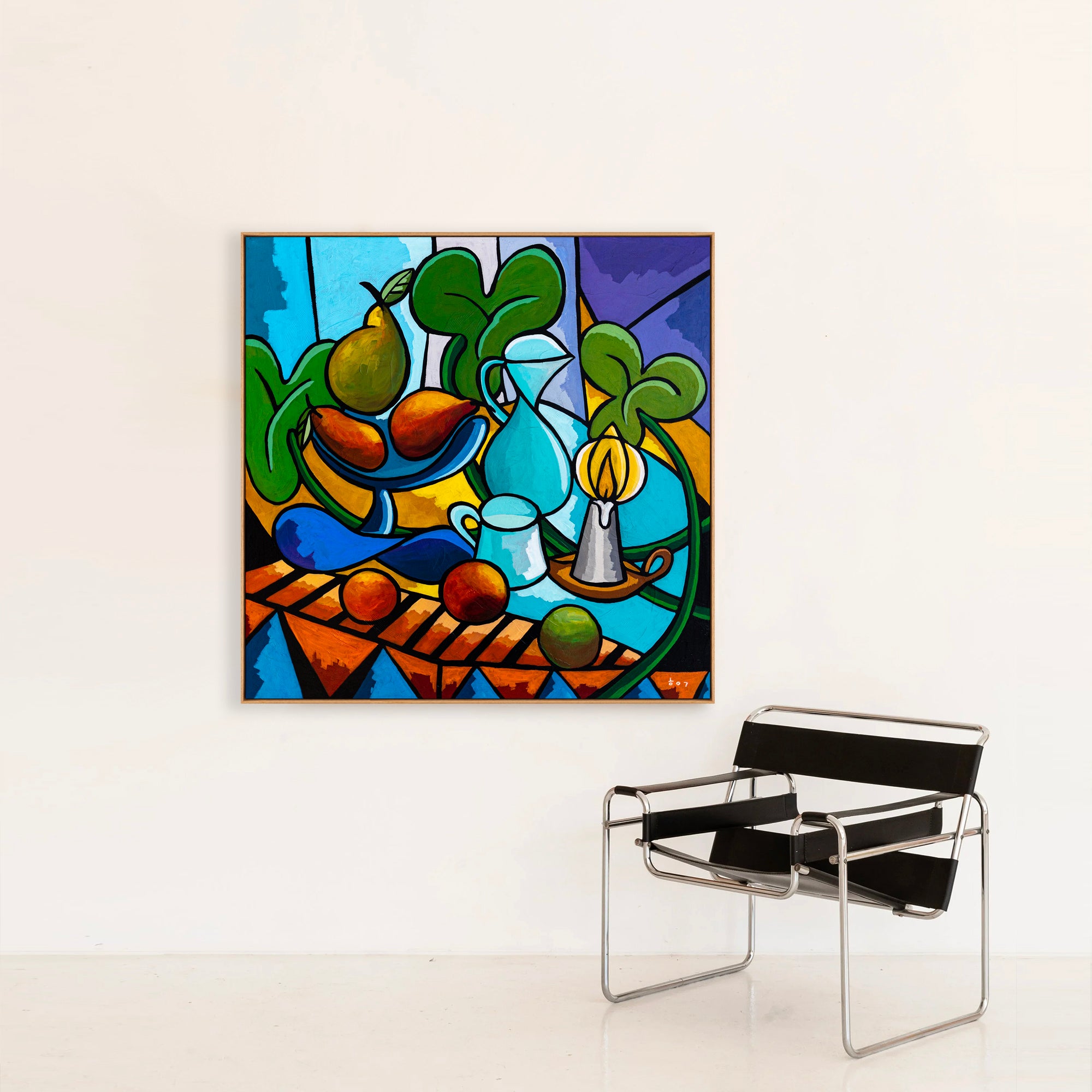If you choose frame option, you will receive the frame painting in a solid oak floater frame (overall 41"x41" / 103x103cm, depth 1.5" / 3 cm).