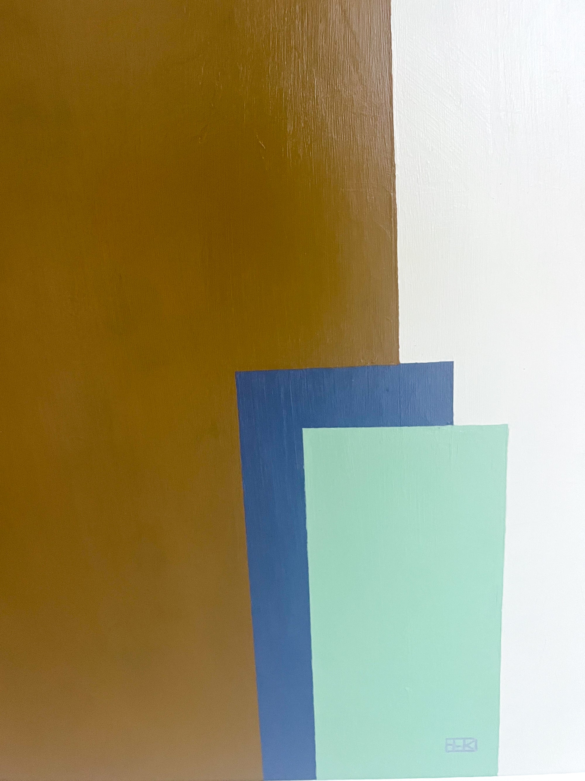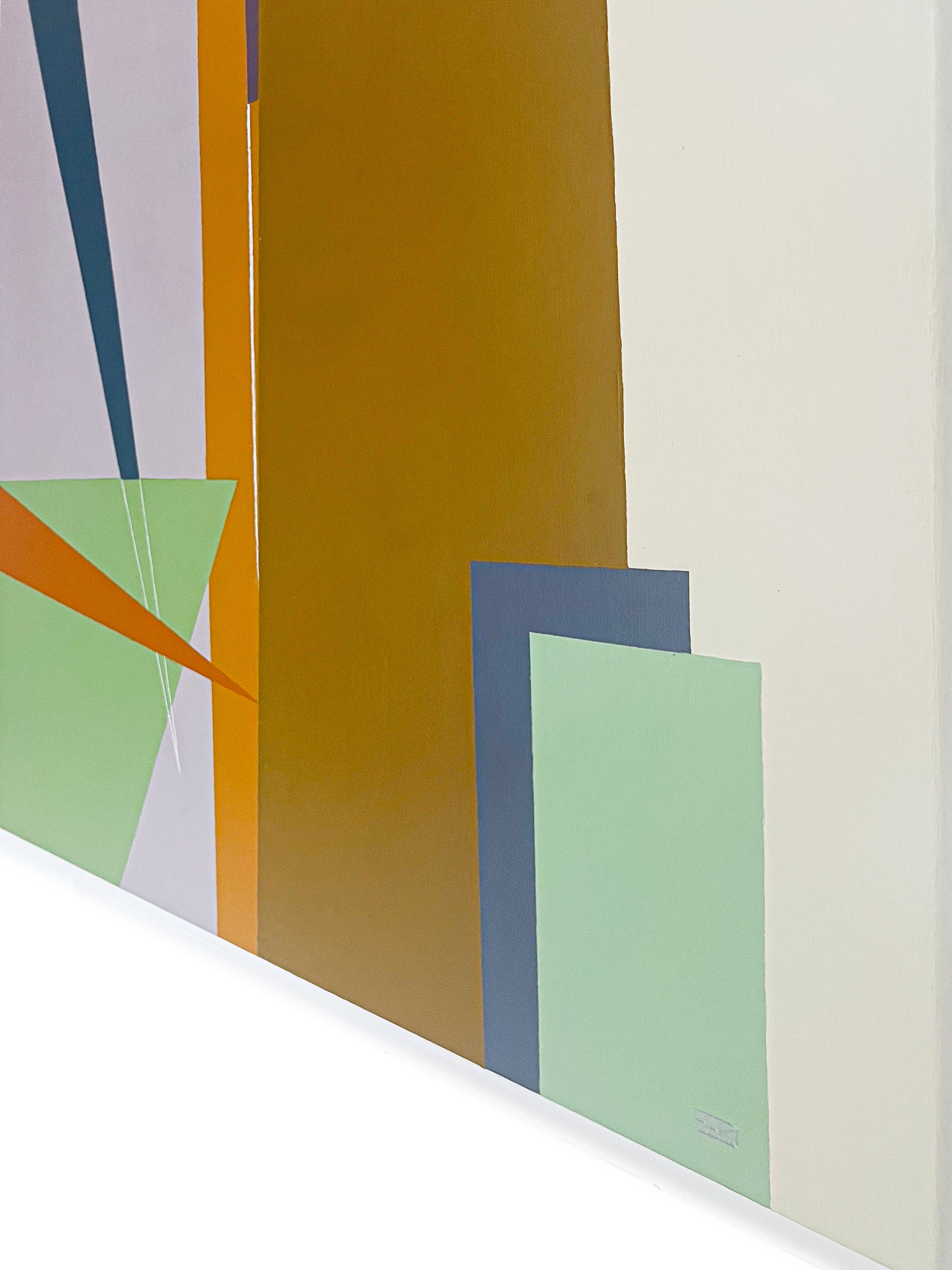 This abstract painting on canvas (40"x50" / 101x127cm) is a large modern wall art piece created with oil, acrylic, and oil pastel. Featuring clean geometric lines and an intuitive color balance, this original painting explores the relationship between logic, memory, and emotion through abstraction, making it a bold and elegant statement for contemporary interiors.