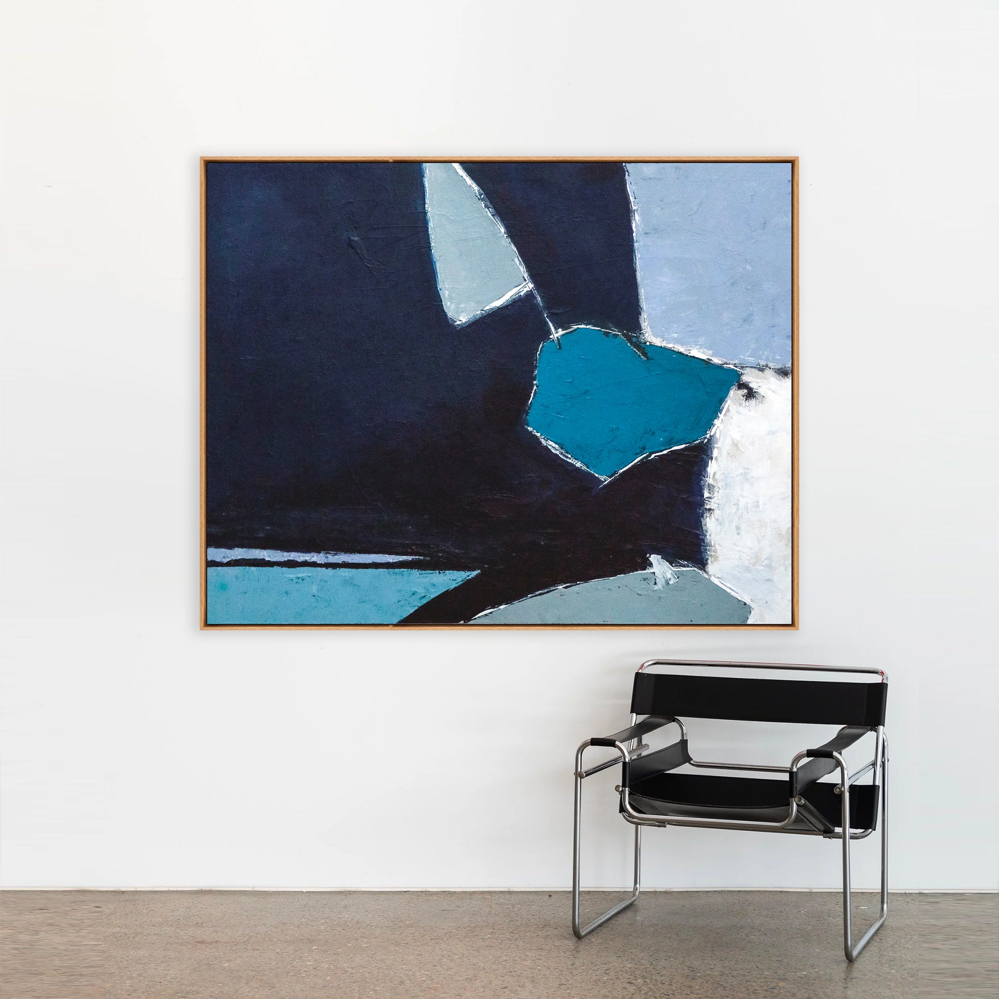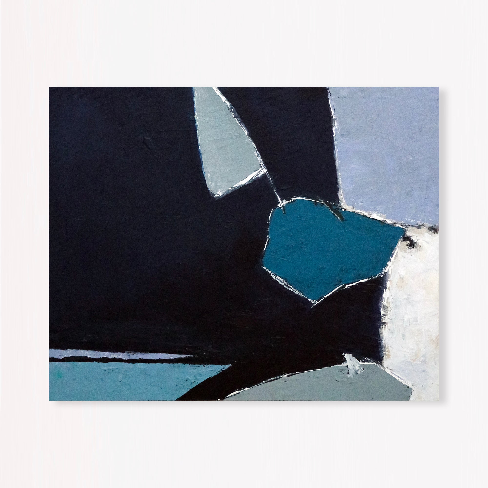 Minimalist in structure yet dynamic in movement, the deliberate brushstrokes introduce a sense of fluid motion within open space. Grey, black, and white accents provide balance and depth, enhancing the painting’s tranquil atmosphere. Refined and inviting, this modern abstract wall art encourages quiet reflection while offering a fresh, playful energy suited to contemporary interiors.
