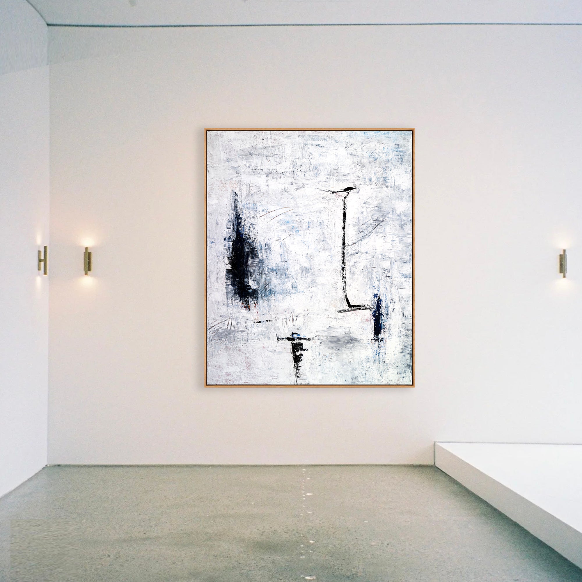 This abstract painting is an original painting and original art piece created with oil painting and acrylic painting on canvas. This abstract wall art reflects modern art and minimalist art, offering contemplative canvas art shaped by restrained gesture, quiet contrast, and poetic simplicity. As a large painting created as true abstract art and original art, it stands as a genuine original painting — not a print — and includes a Certificate of Authenticity.