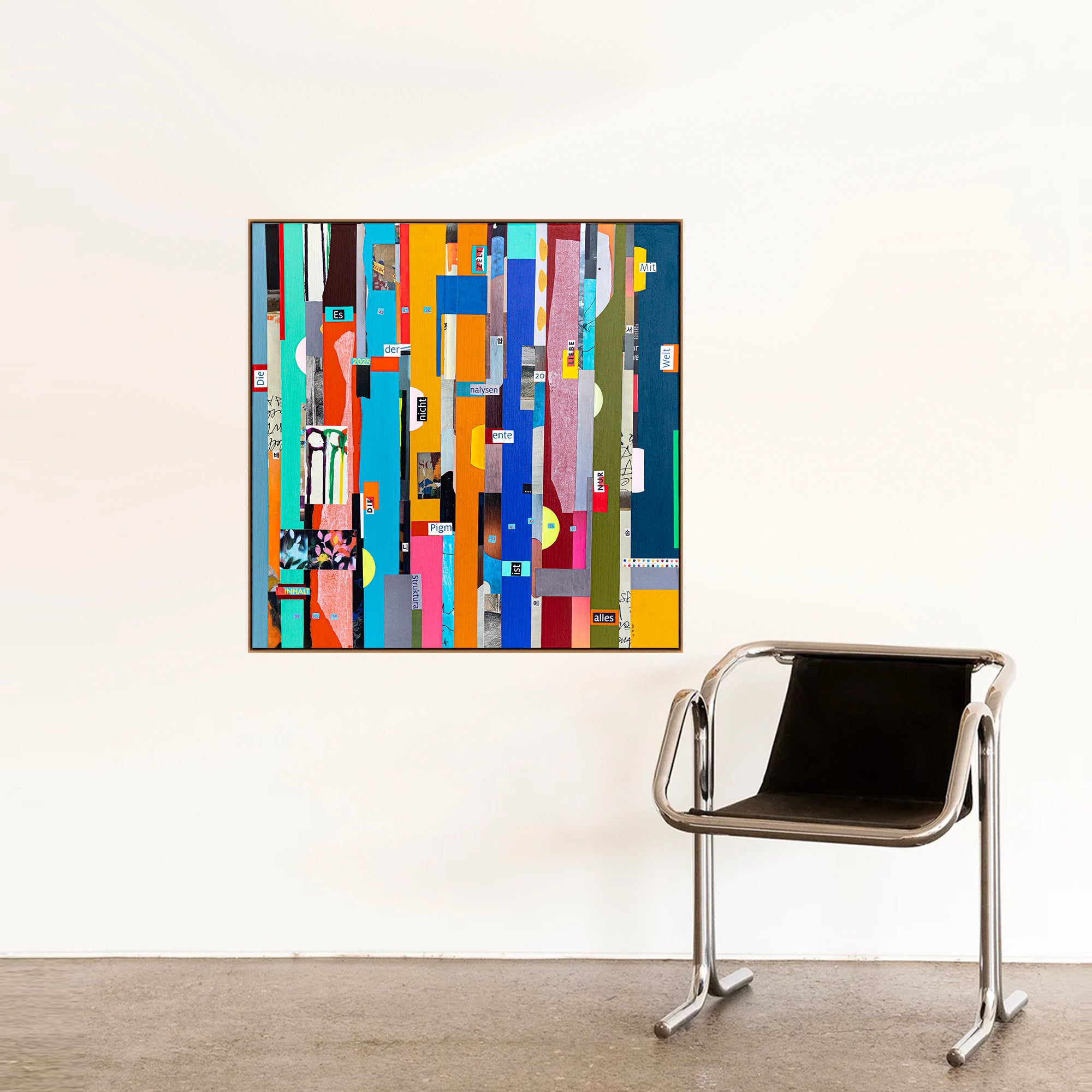 Abstract Painting – Original Collage Wall Art – Mixed Media on Canvas – Modern Geometric Collage – Mid-Century Rithmo (30"x30" | 76x76cm)