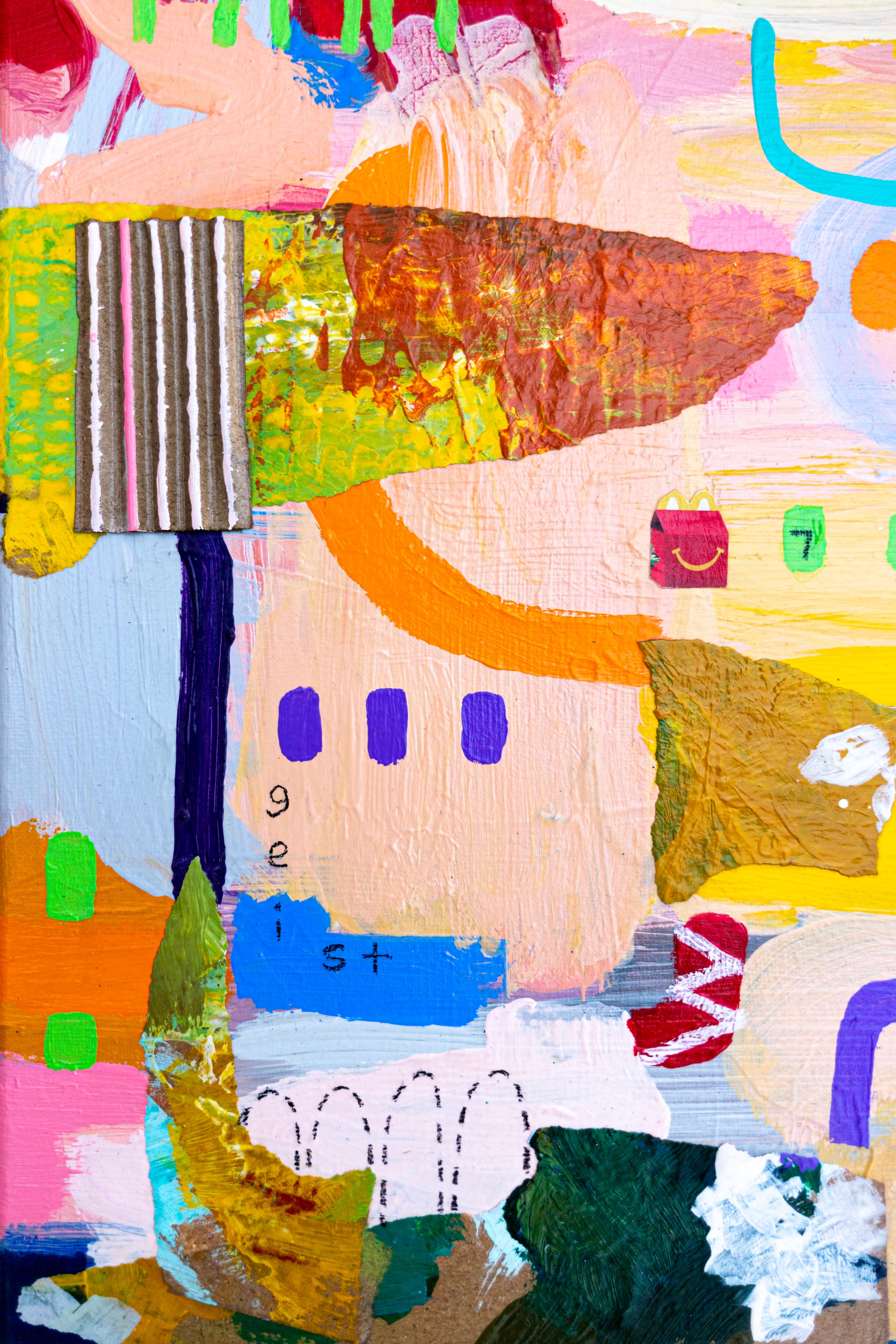 Abstract Painting – Original Wall Art – Acrylic Oil Painting & Mixed Media on Canvas – Modern Playful Bright – "Ludus II" – 16"x16" (40x40cm)