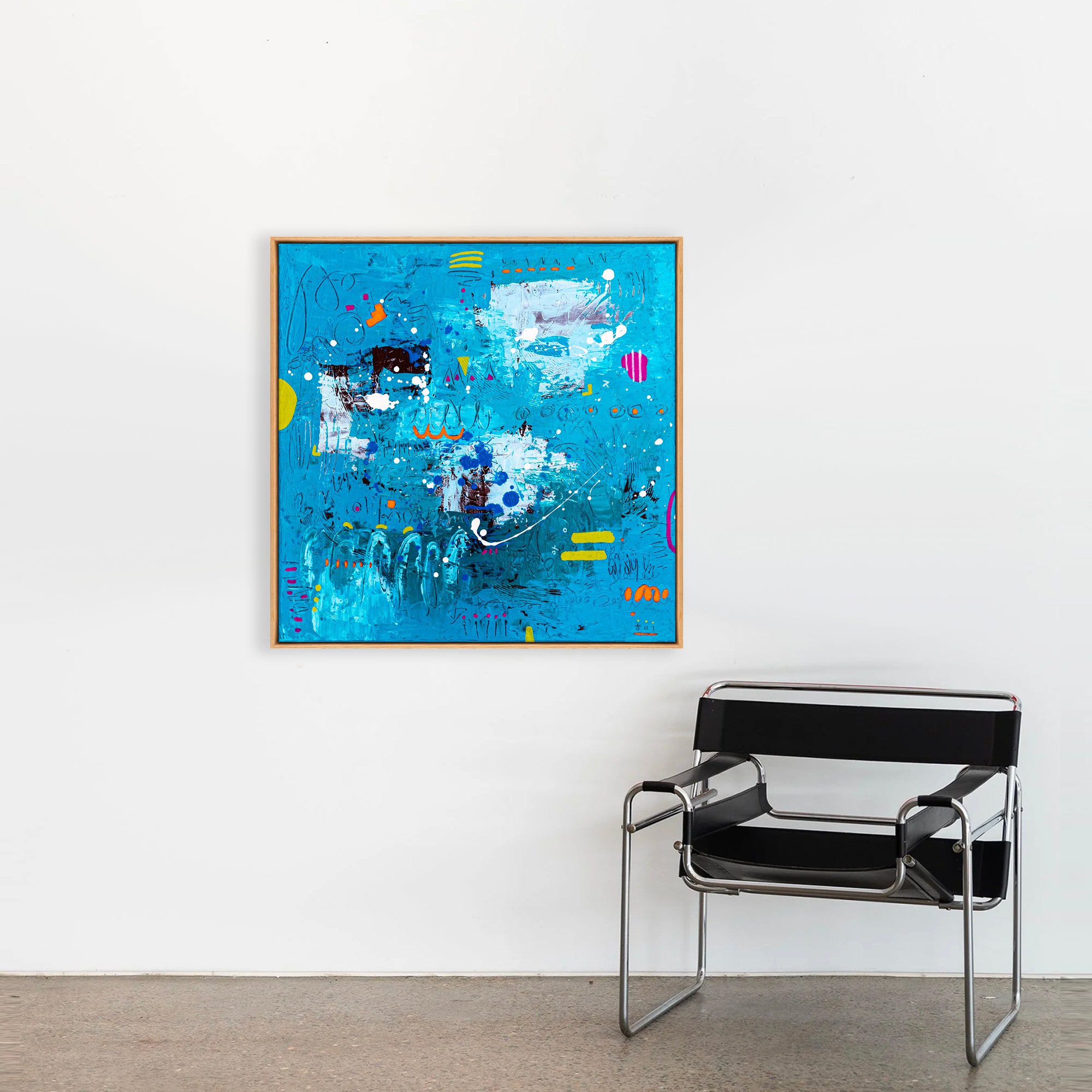 “Cordelia” is an abstract art piece that stimulates imagination through beautiful color harmonies and delicate, playful elements. The composition feels intuitive and poetic, allowing color and form to speak freely while maintaining visual harmony. One-of-a-kind original art, signed on both the front and back by artist Hyunah Kim, this painting is 100% hand-painted, ready to hang, and accompanied by a certificate of authenticity — an elegant statement for living rooms, offices, or gallery spaces.