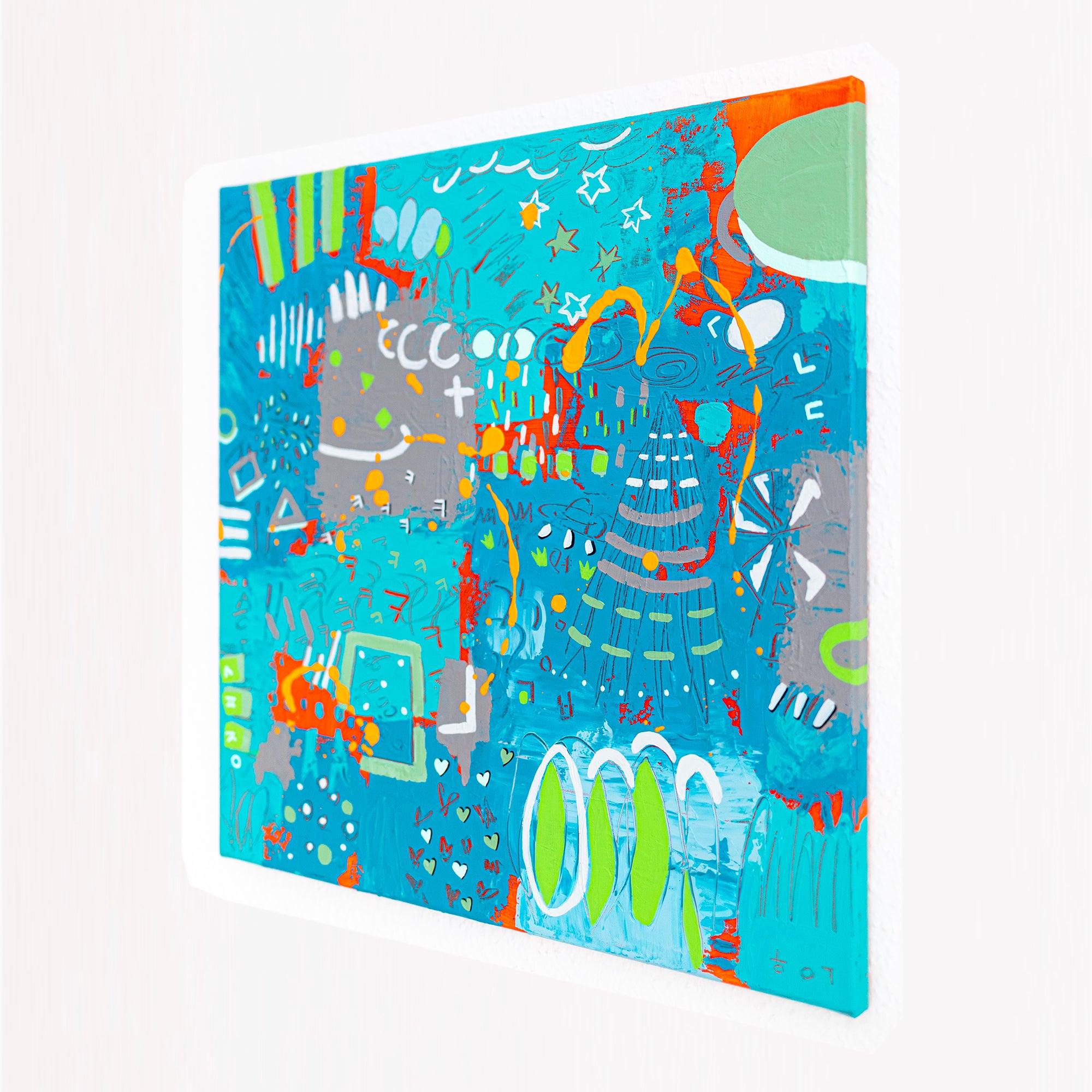 Abstract Painting - Original Wall Art – Oil & Acrylic on Canvas – Turquoise Contemporary Modern Wall Art – Minus ita I (20"x20" | 50x50cm)