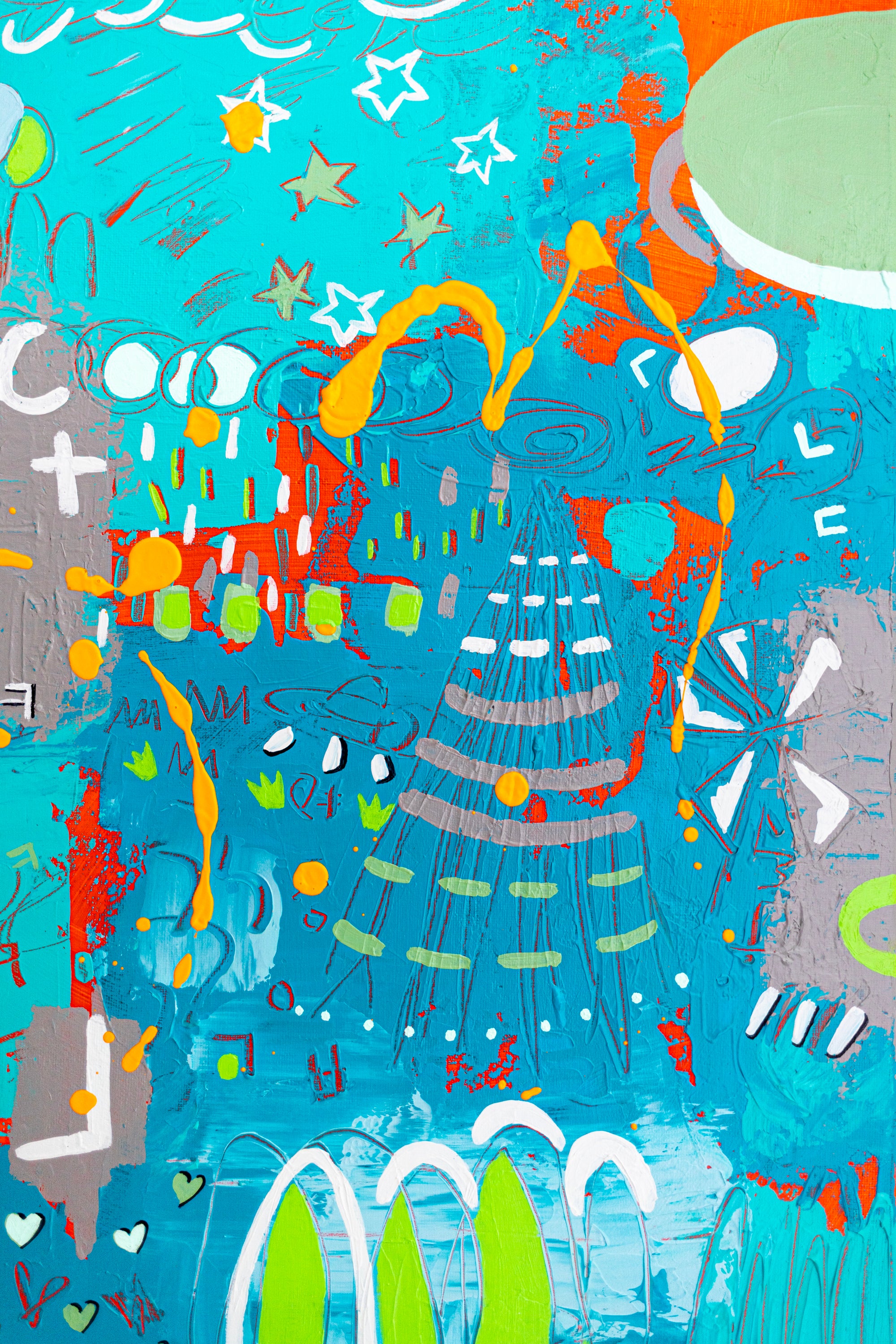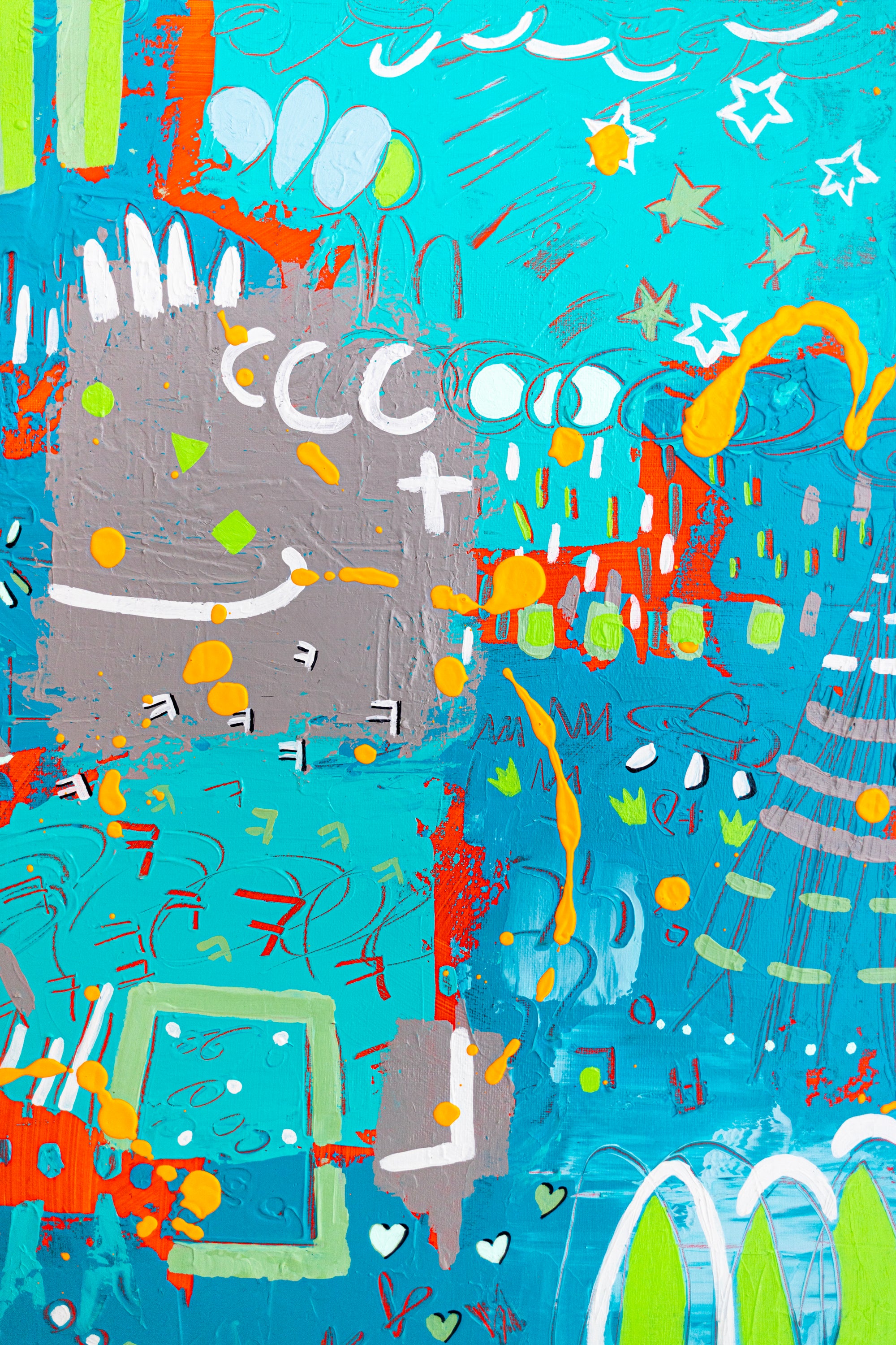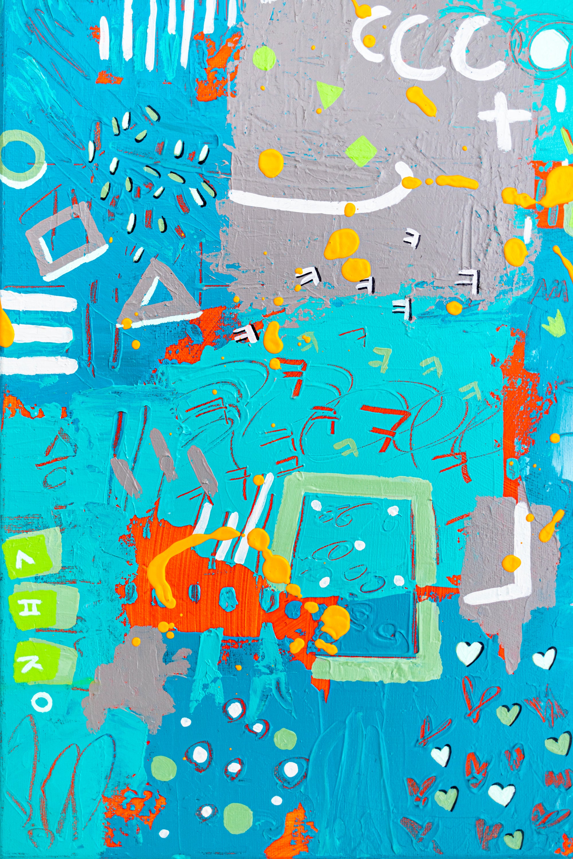 This abstract painting in mixed media on canvas (20"x20" / 50x50cm) is a vibrant modern wall art piece created with oil painting, acrylic, oil pastel, pencil, and mixed media. This original painting captures the expressive character of abstract wall art, acrylic painting, and minimalist art in a refined and harmonious composition.