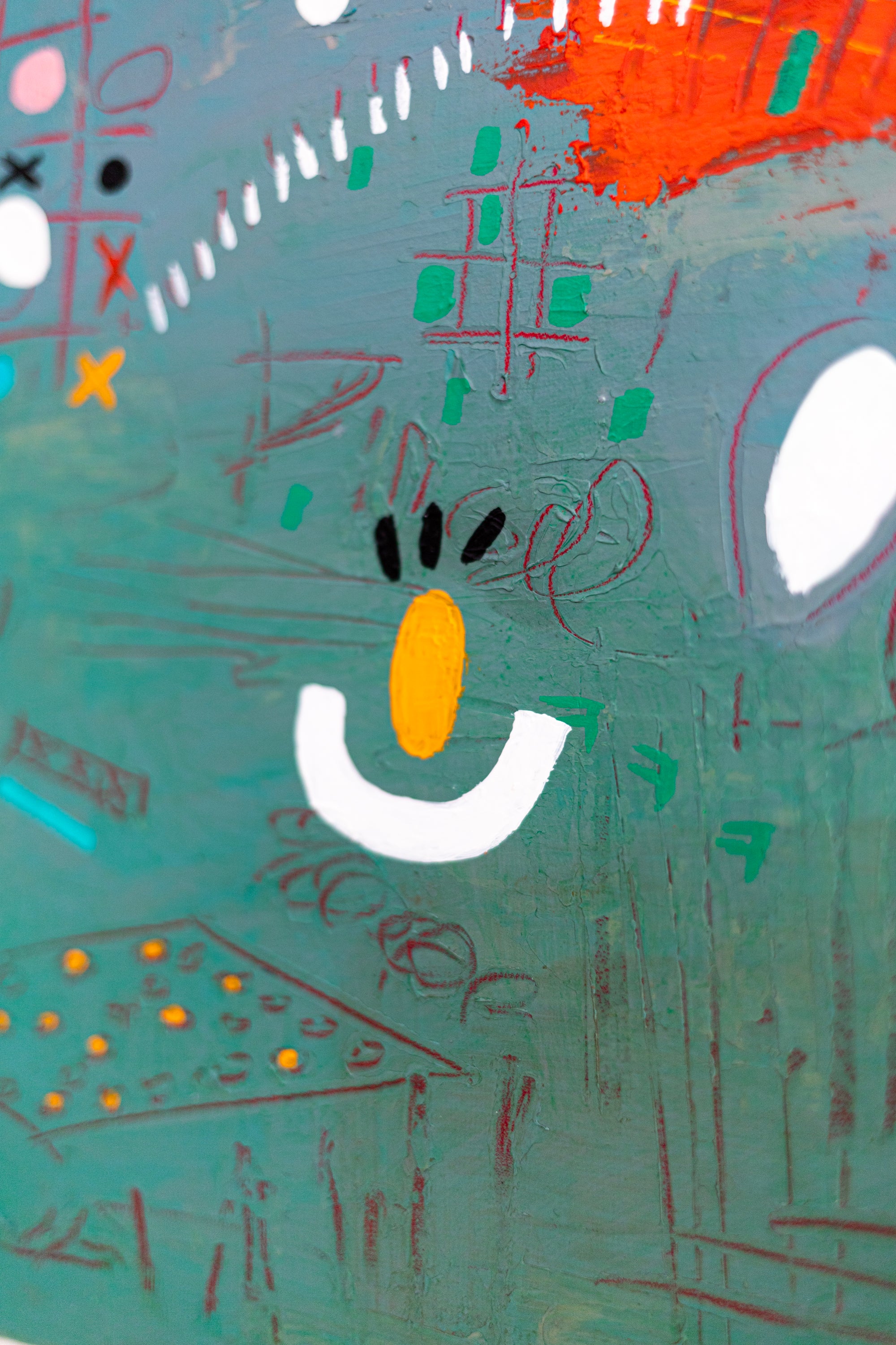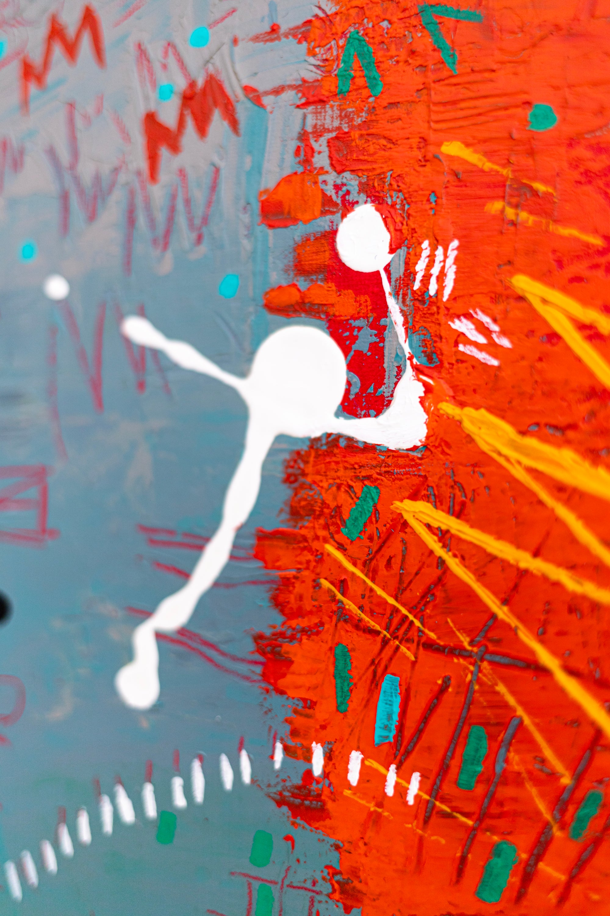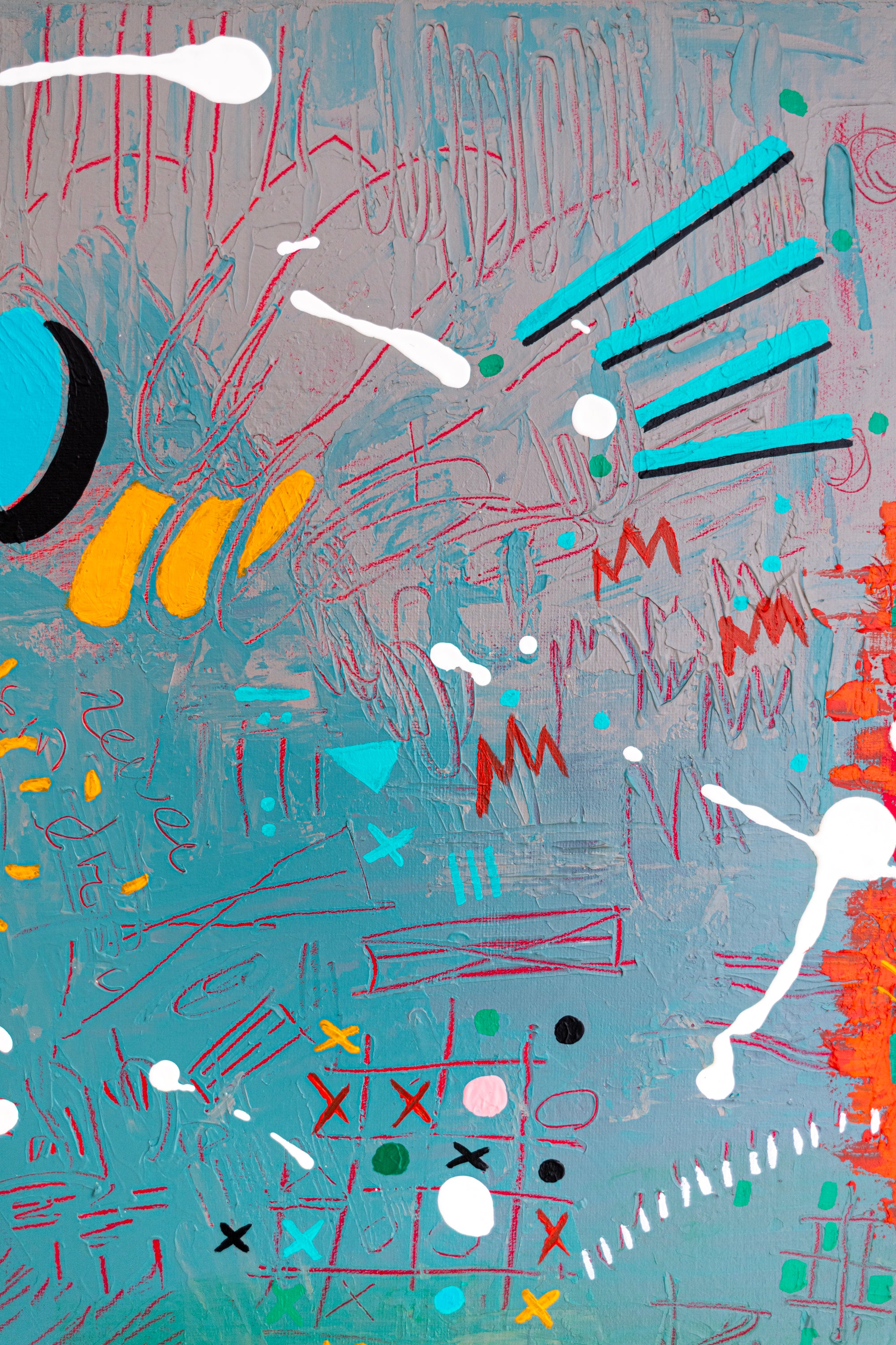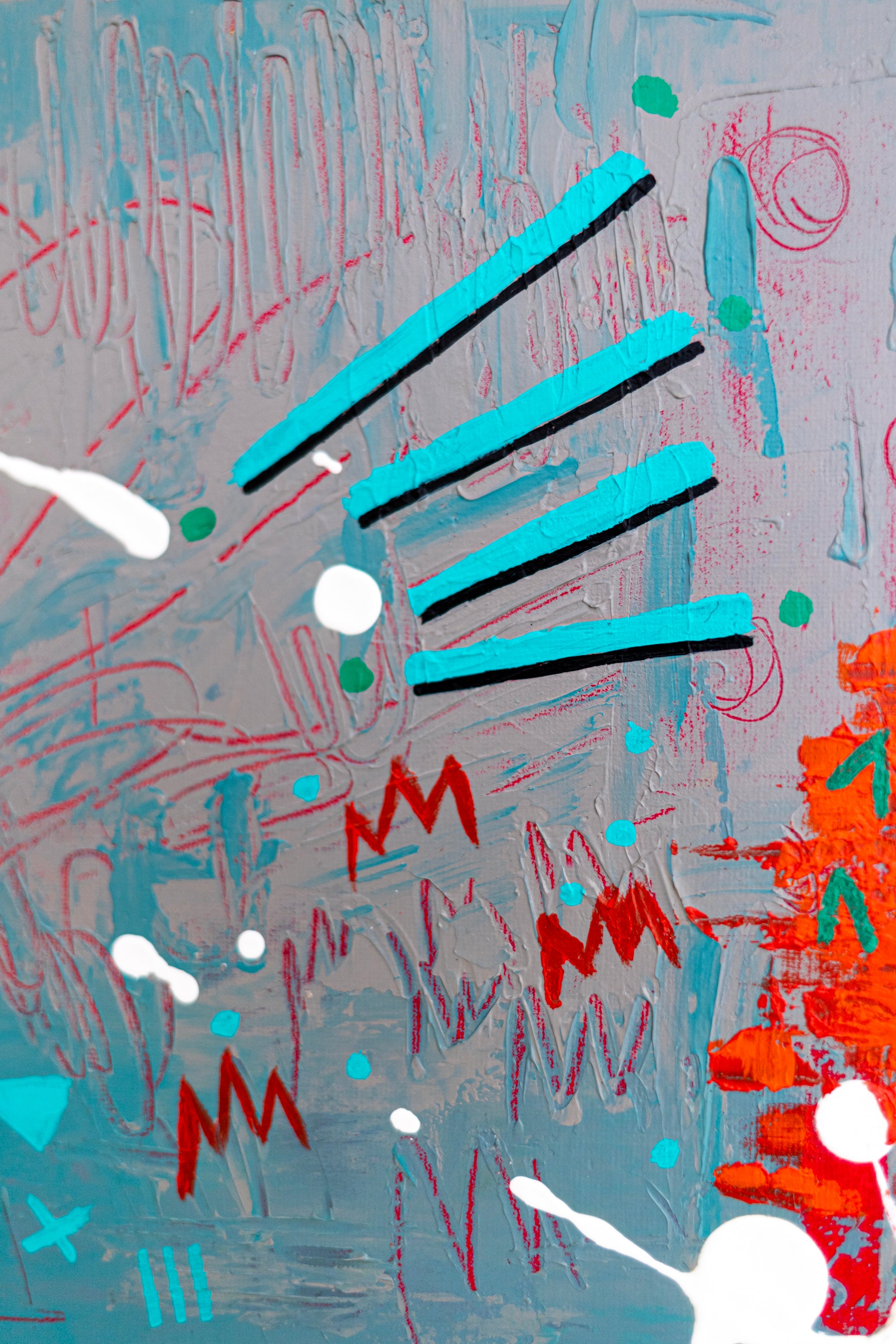 This abstract painting in mixed media on canvas (20"x20" / 50x50cm) is a vibrant modern wall art piece created with oil painting, acrylic, oil pastel, pencil, and mixed media. This original painting captures the expressive character of abstract wall art, acrylic painting, and minimalist art in a refined and harmonious composition.