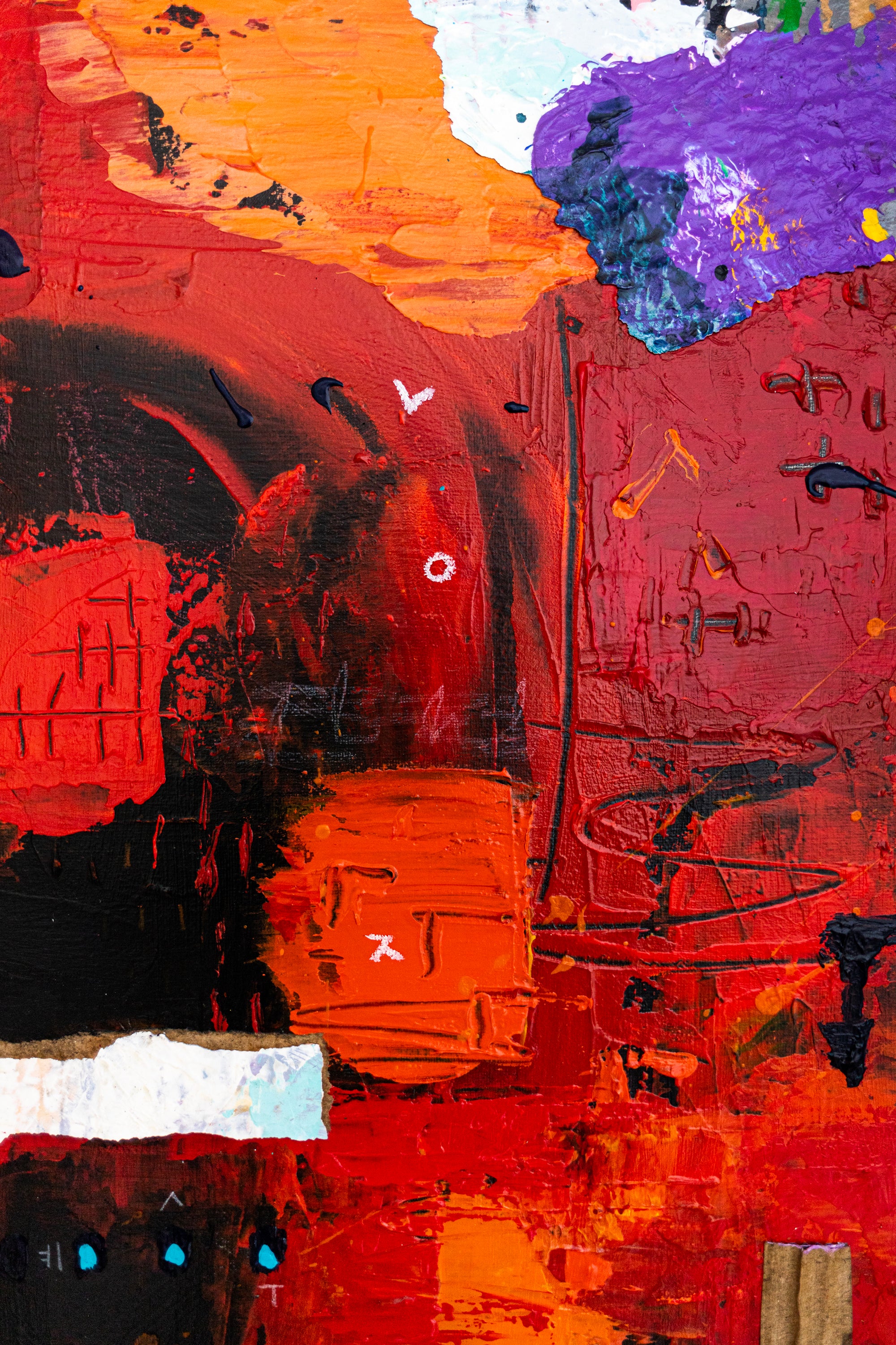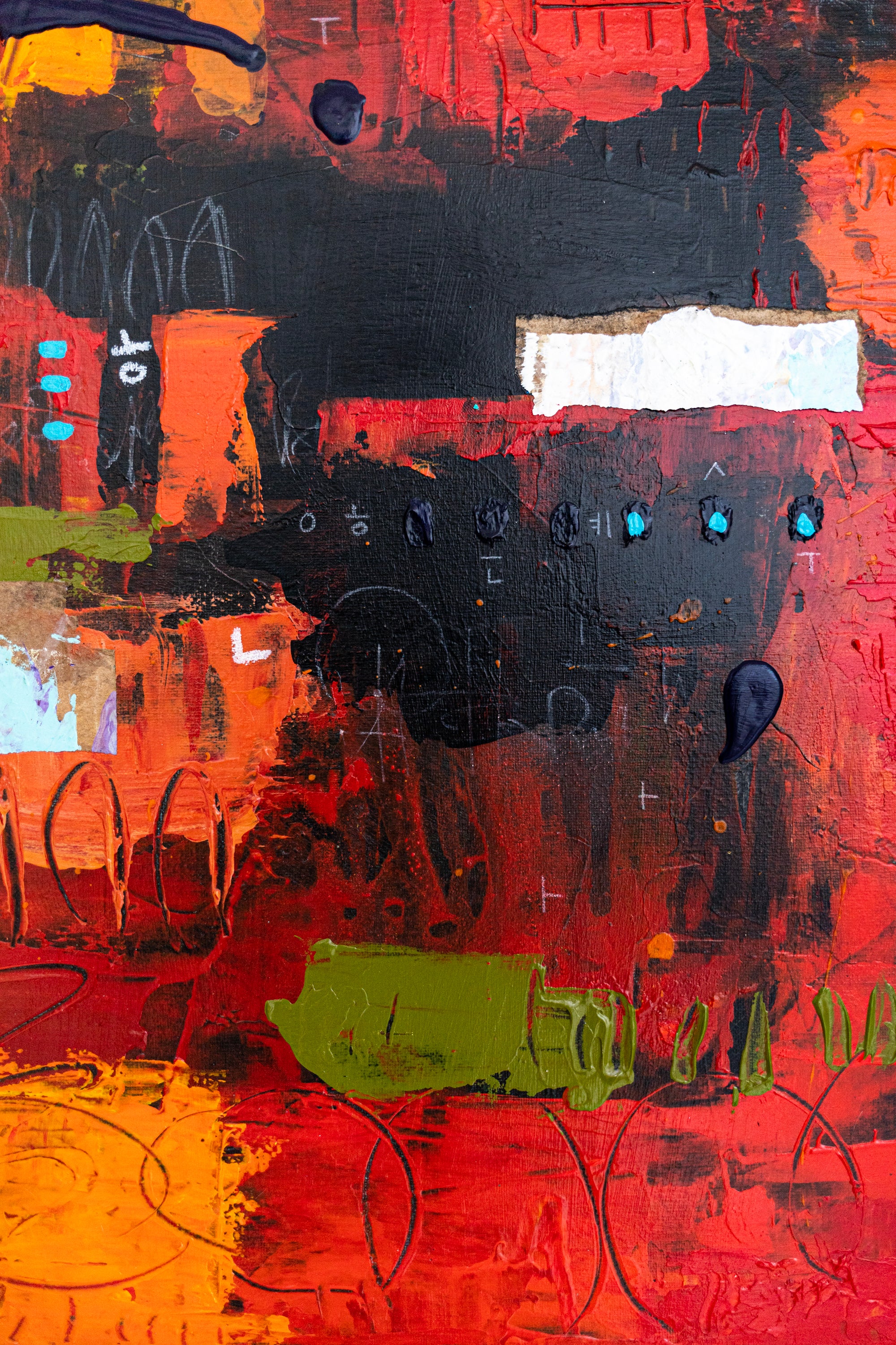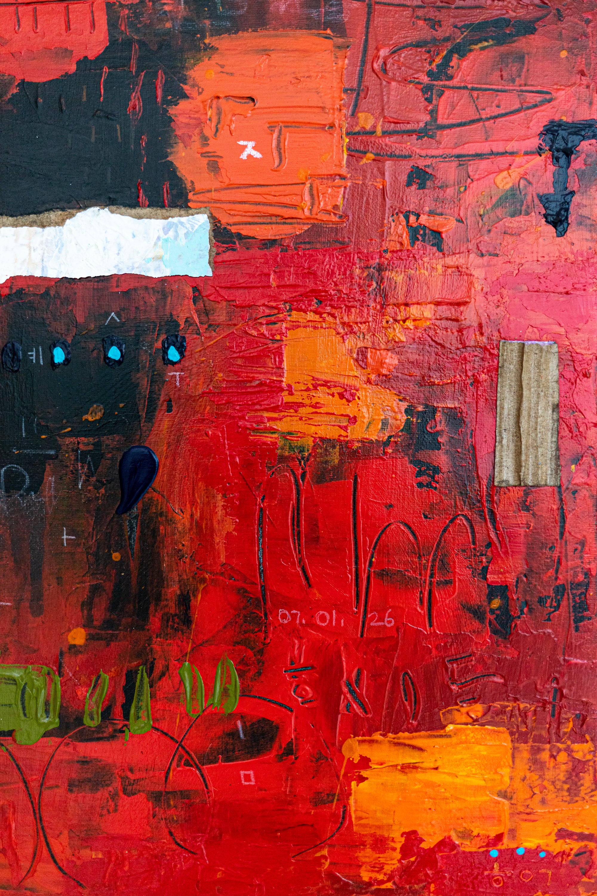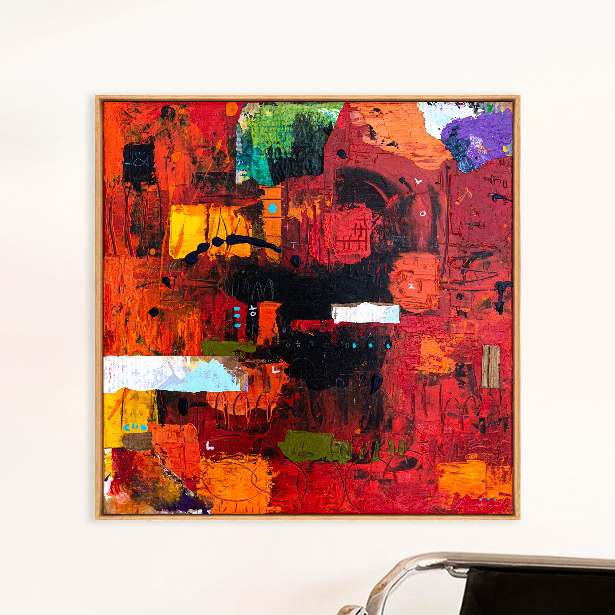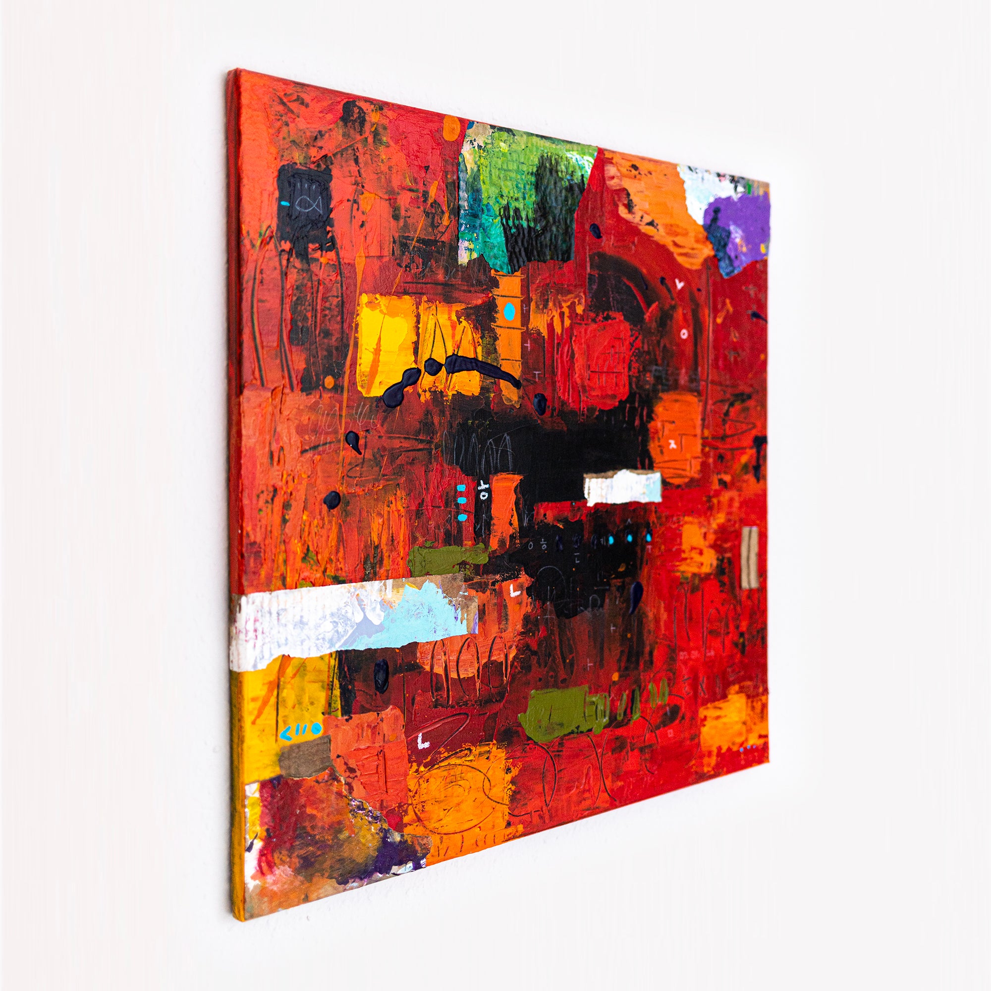 Abstract Painting - Red Original Wall Art – Large Oil & Acrylic on Canvas – Mixed Media Modern Wall Art – Oratio Rubra (24"x24" | 60x60cm)