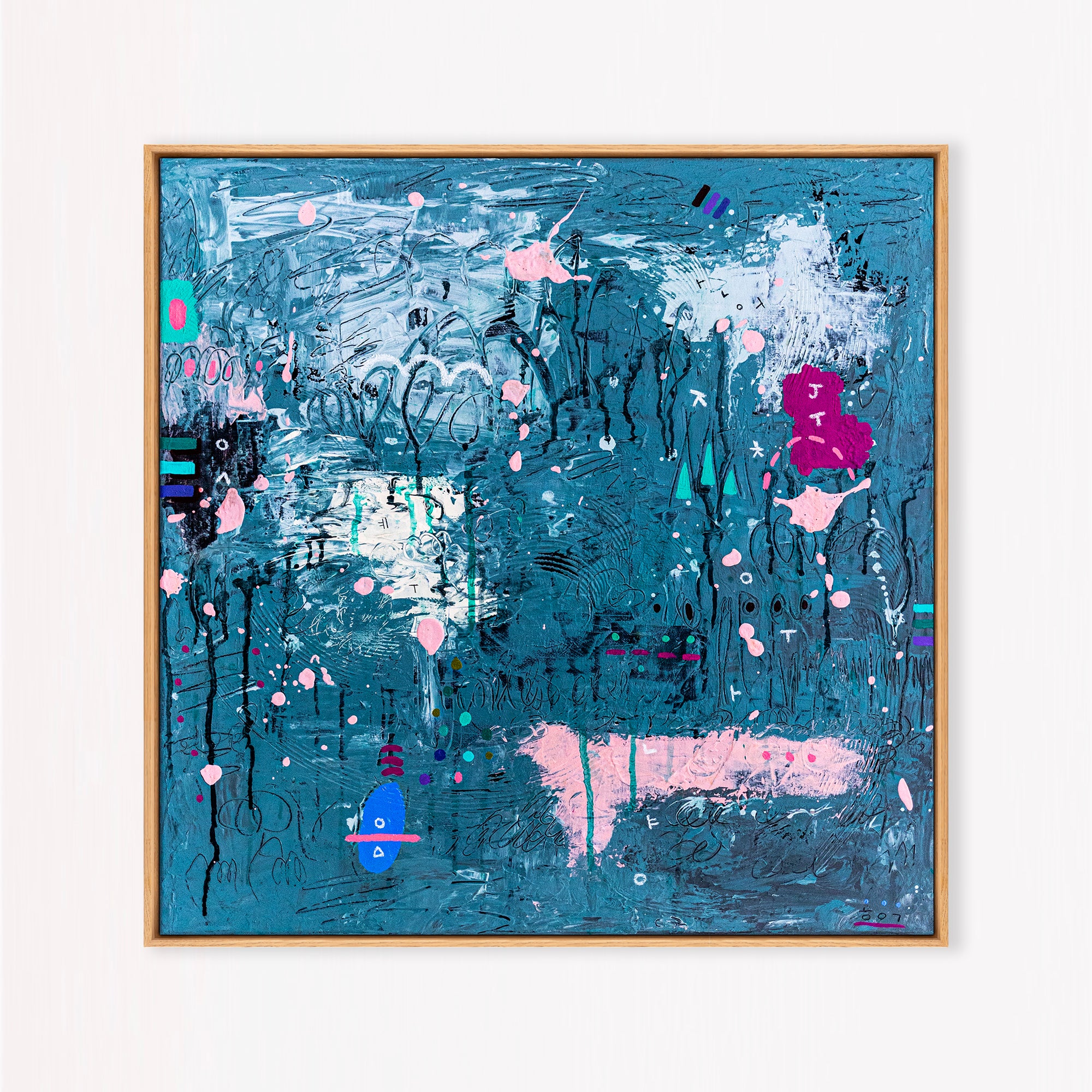 ■ Framed in oak floater frame, ready to hang