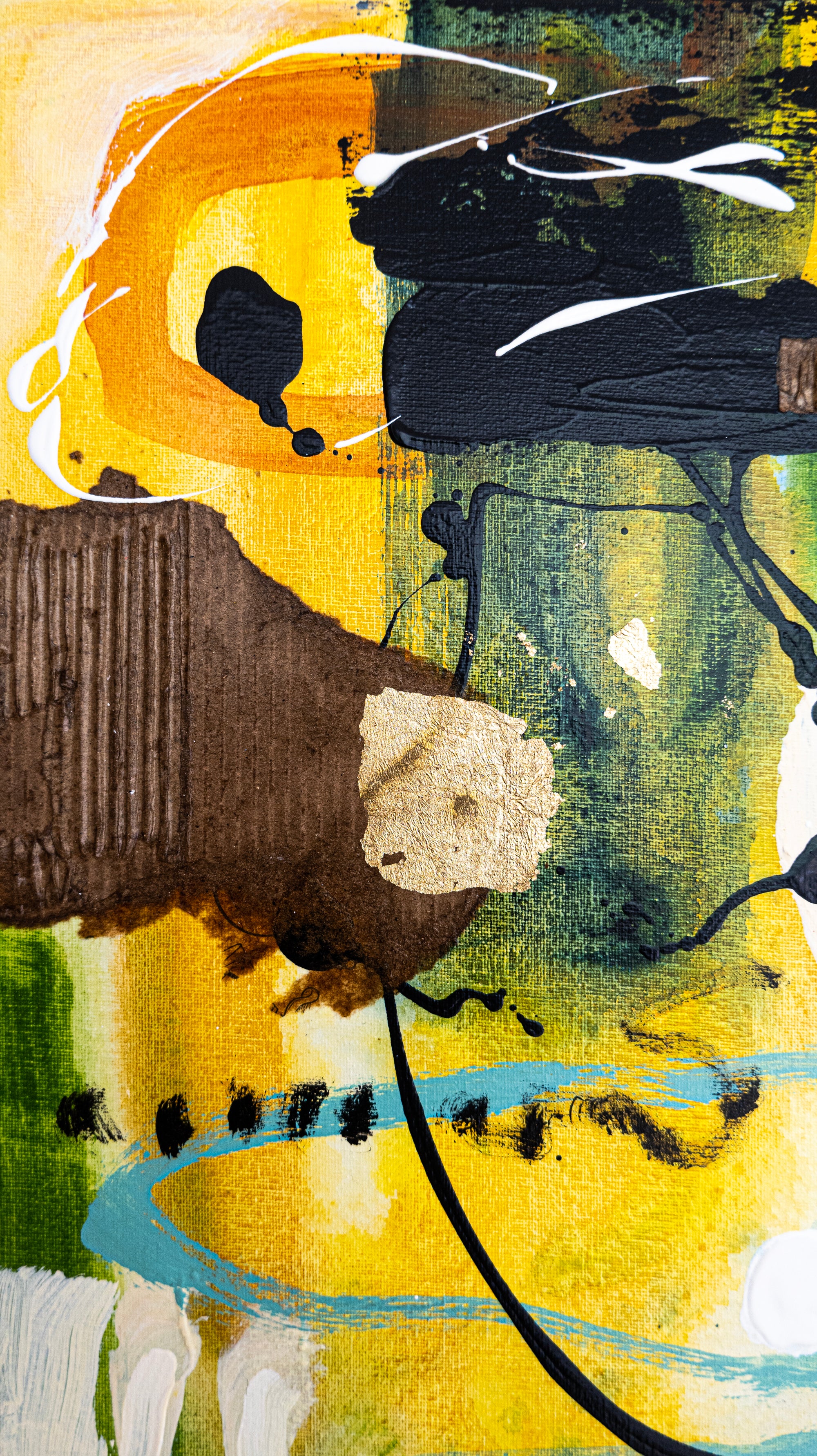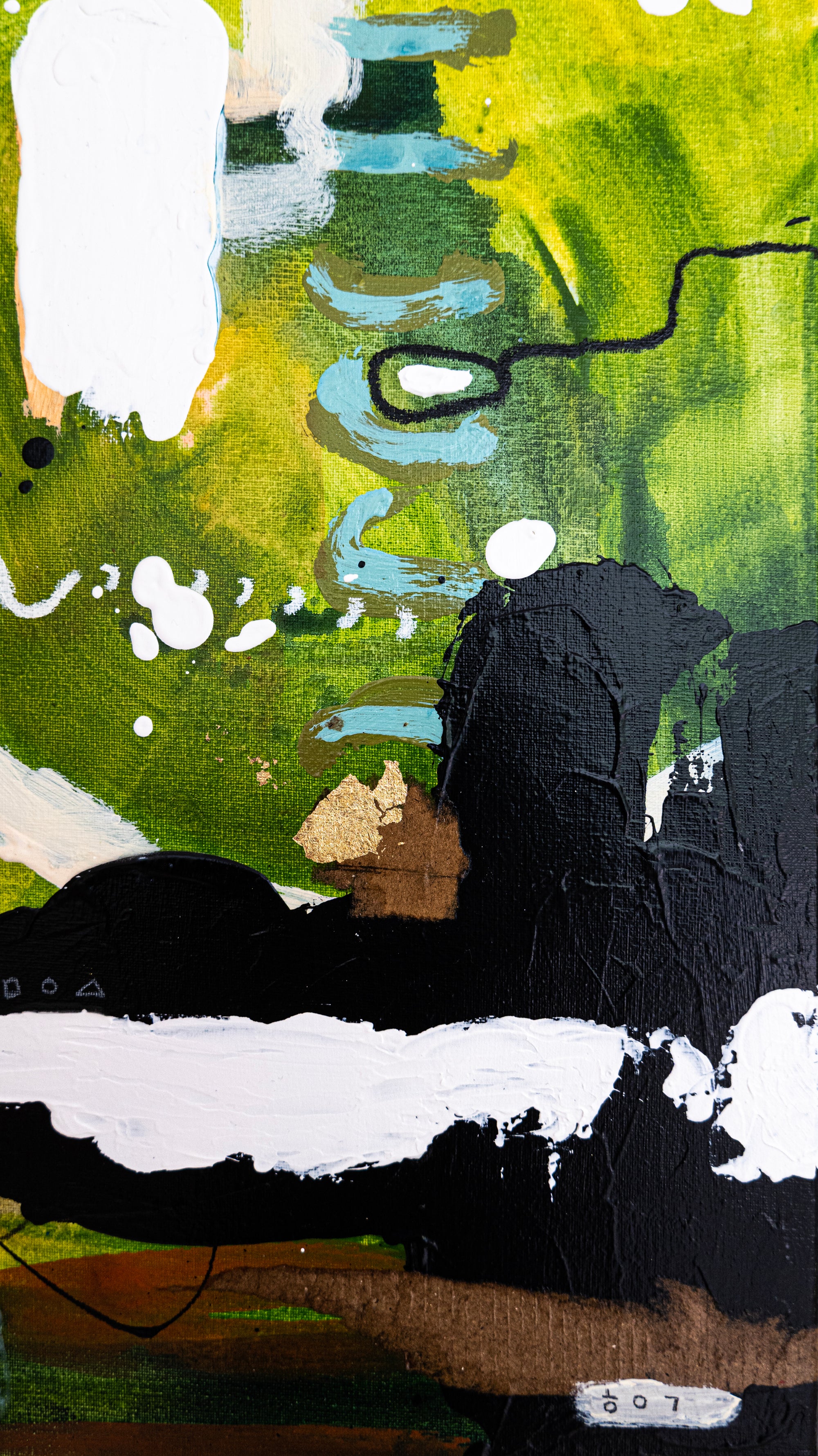 ■ Original abstract painting in green and yellow tones