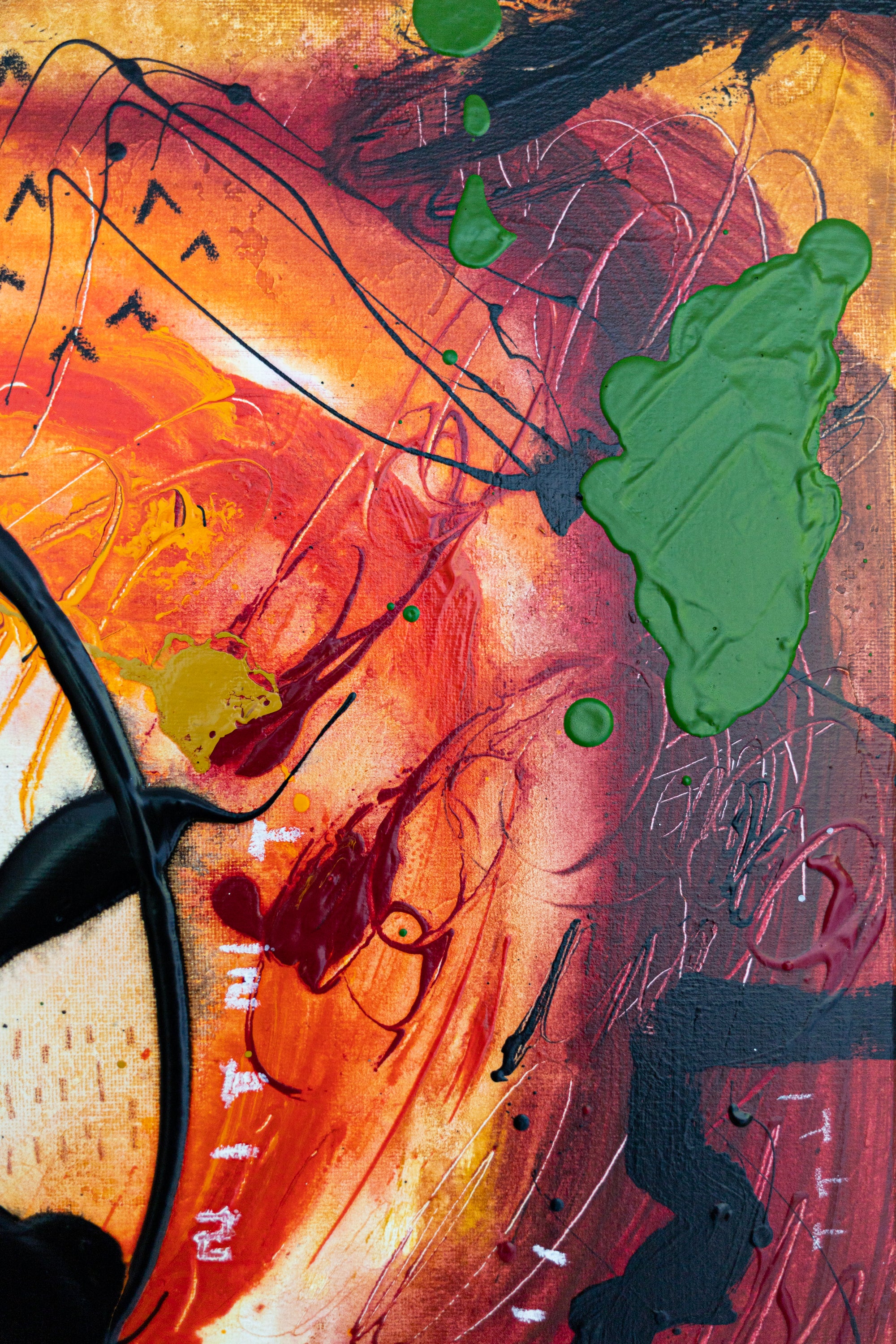This abstract painting in mixed media on canvas (20"x20" / 50x50cm) is a powerful modern wall art piece created with oil painting, acrylic, oil pastel, pencil, and mixed media. This original painting captures the bold expression of abstract wall art, acrylic painting, and minimalist art through vibrant, energetic tones.