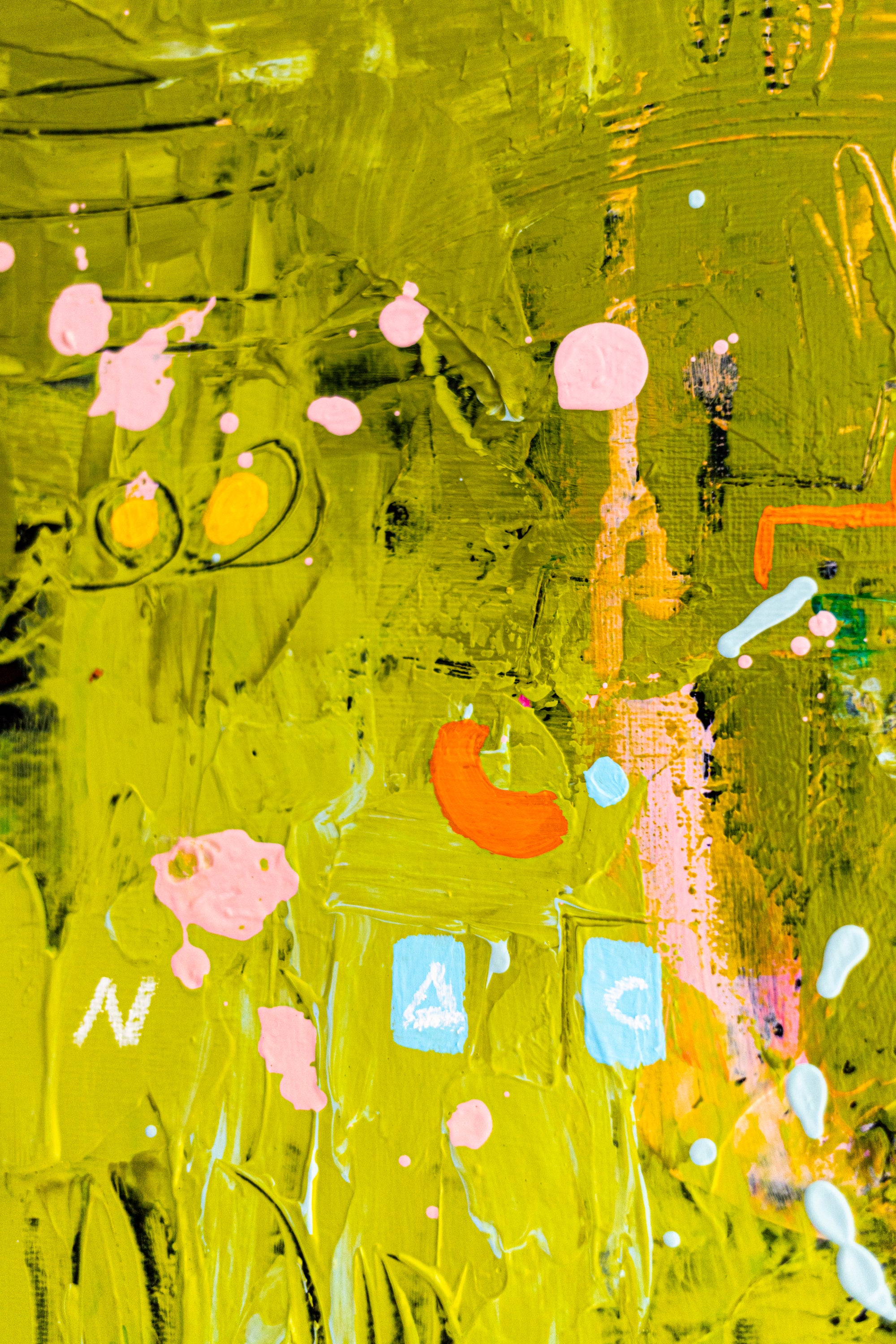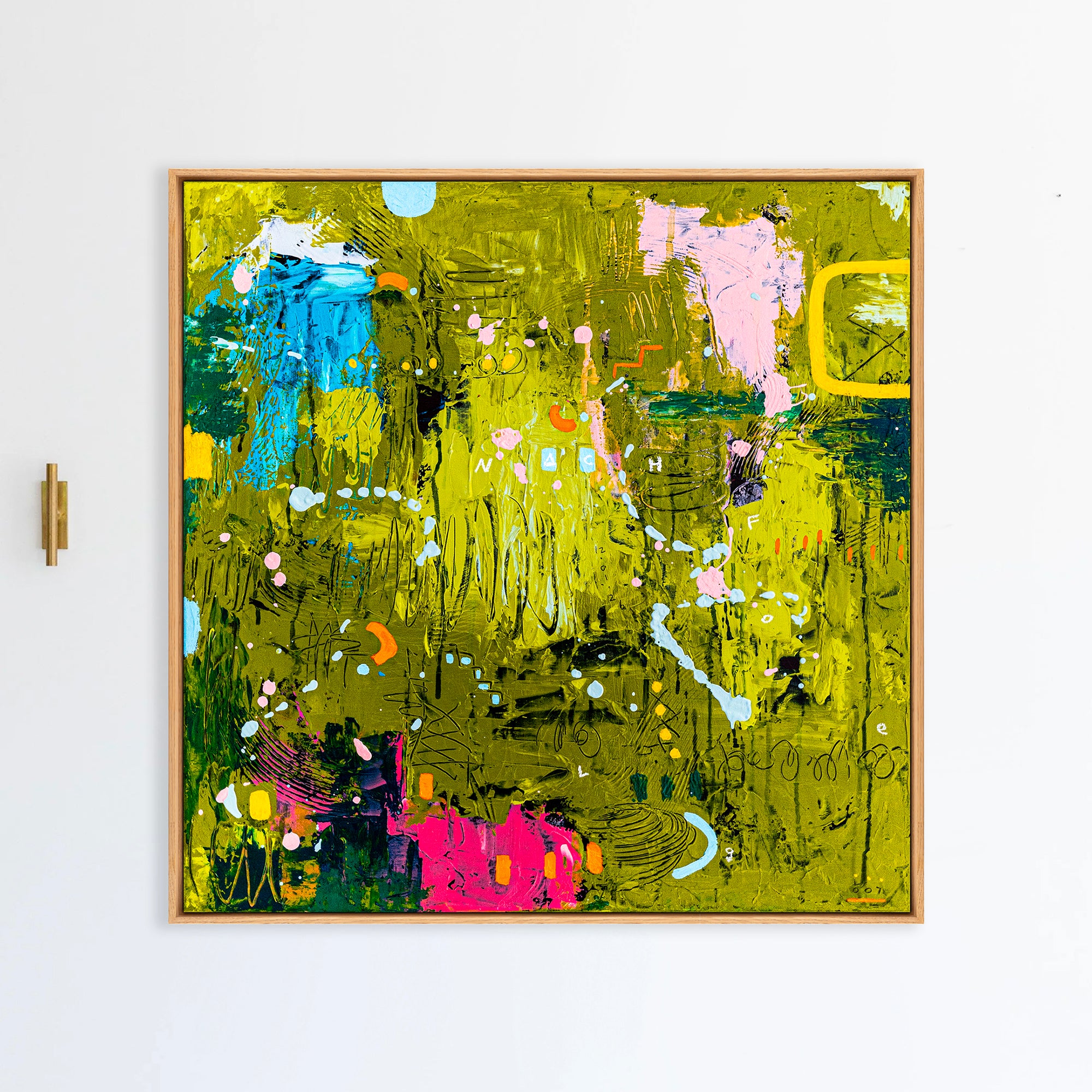 Abstract Painting – Original Acrylic & Oil Painting on Canvas, Mixed Media Modern Painting – Spriritus Viridis (20"x20" | 50x50cm)