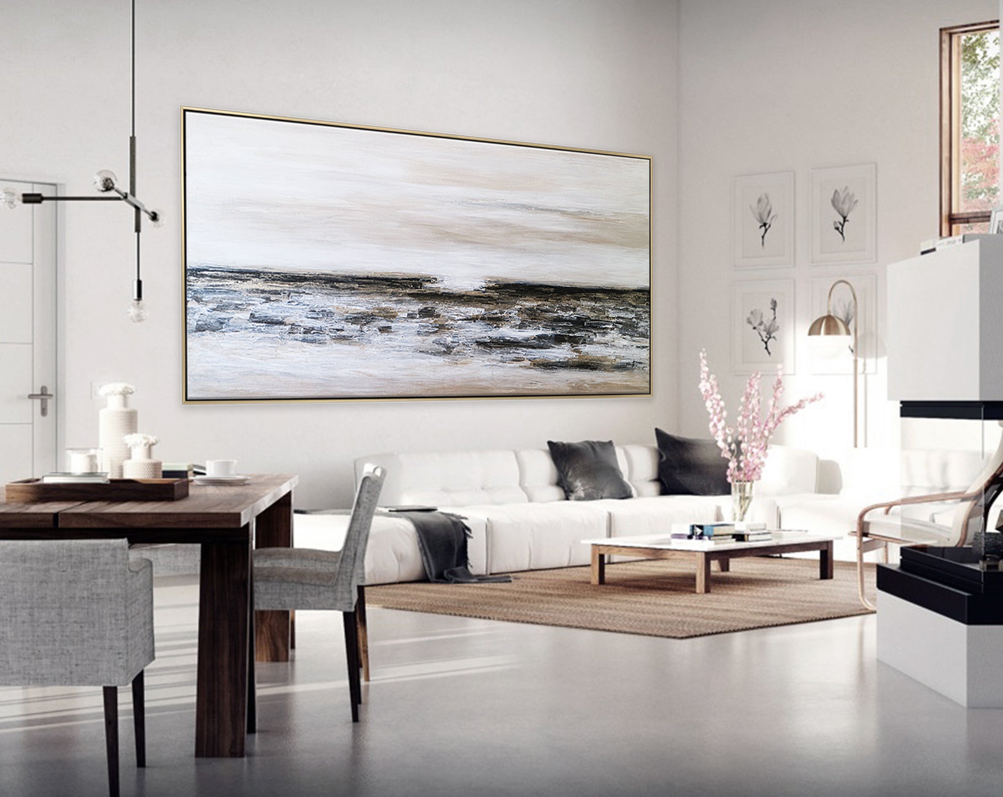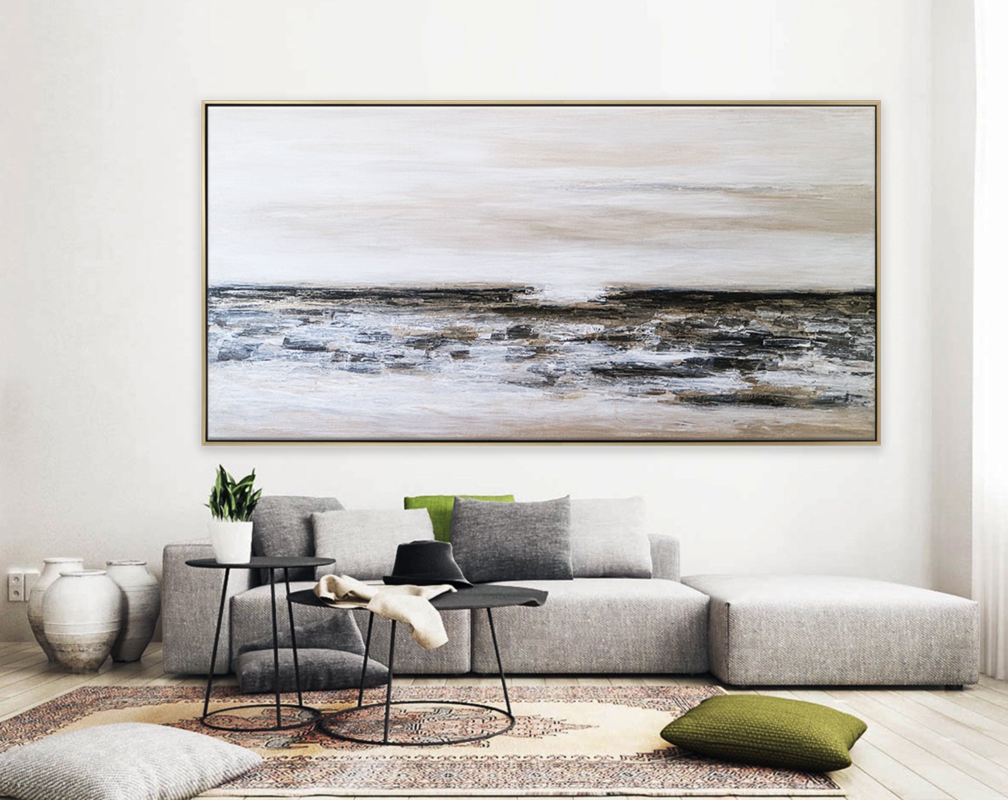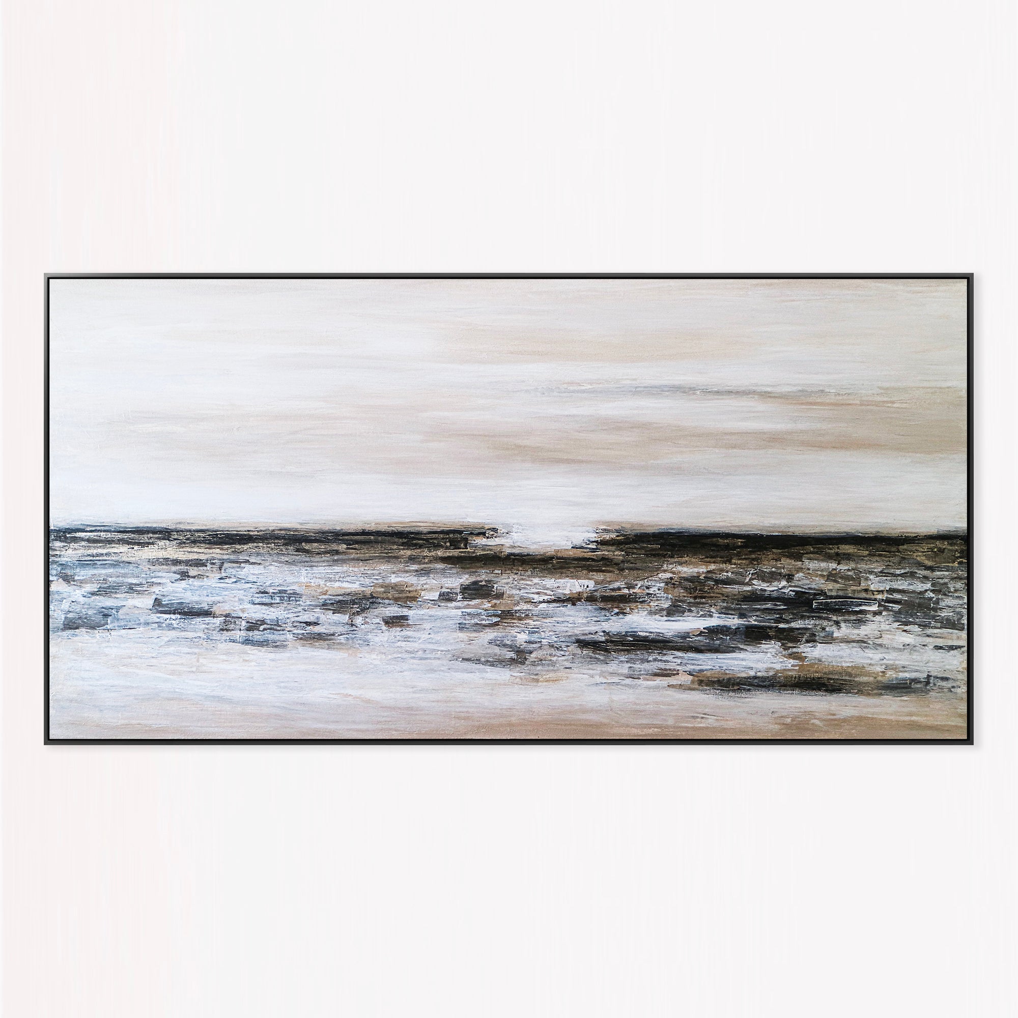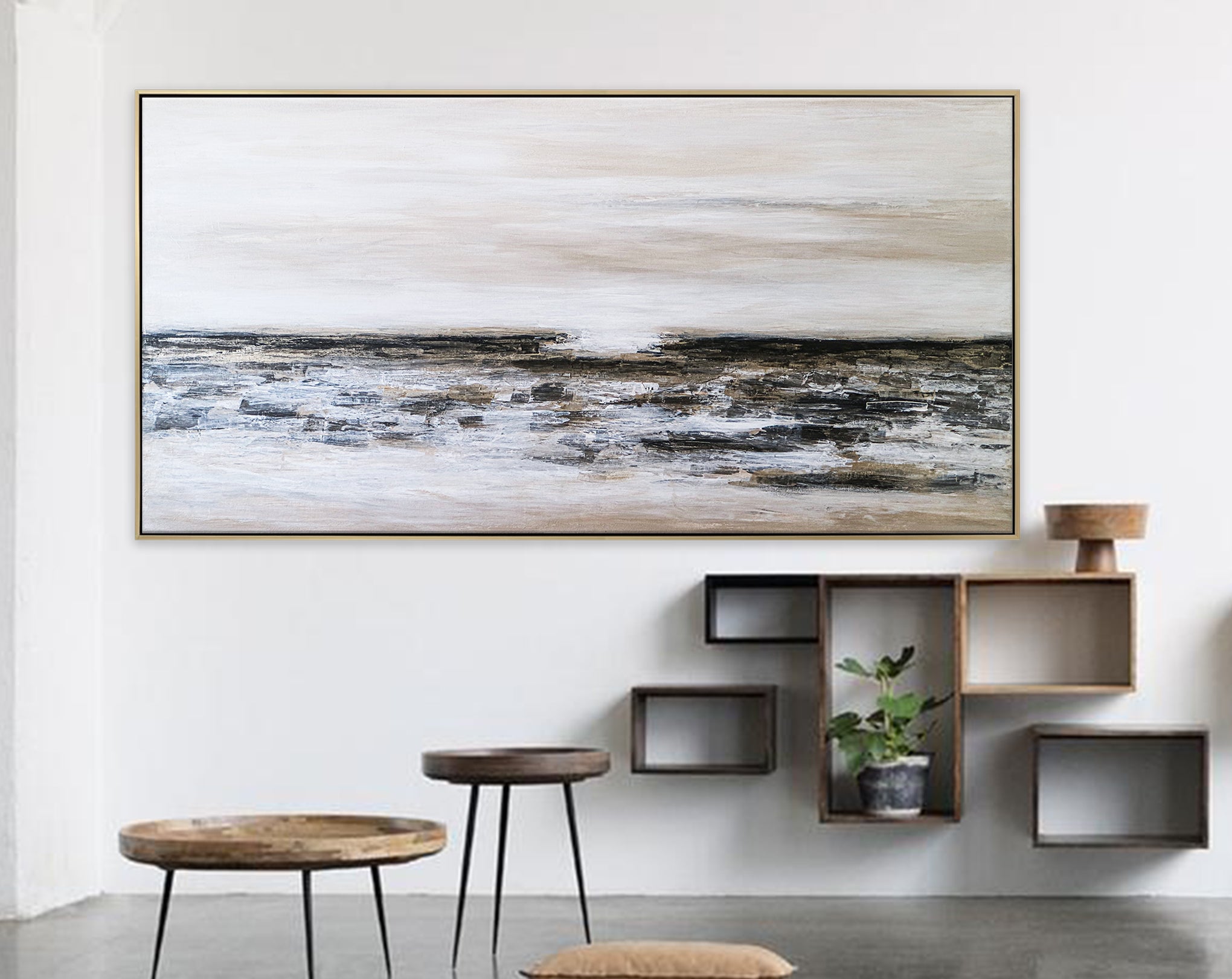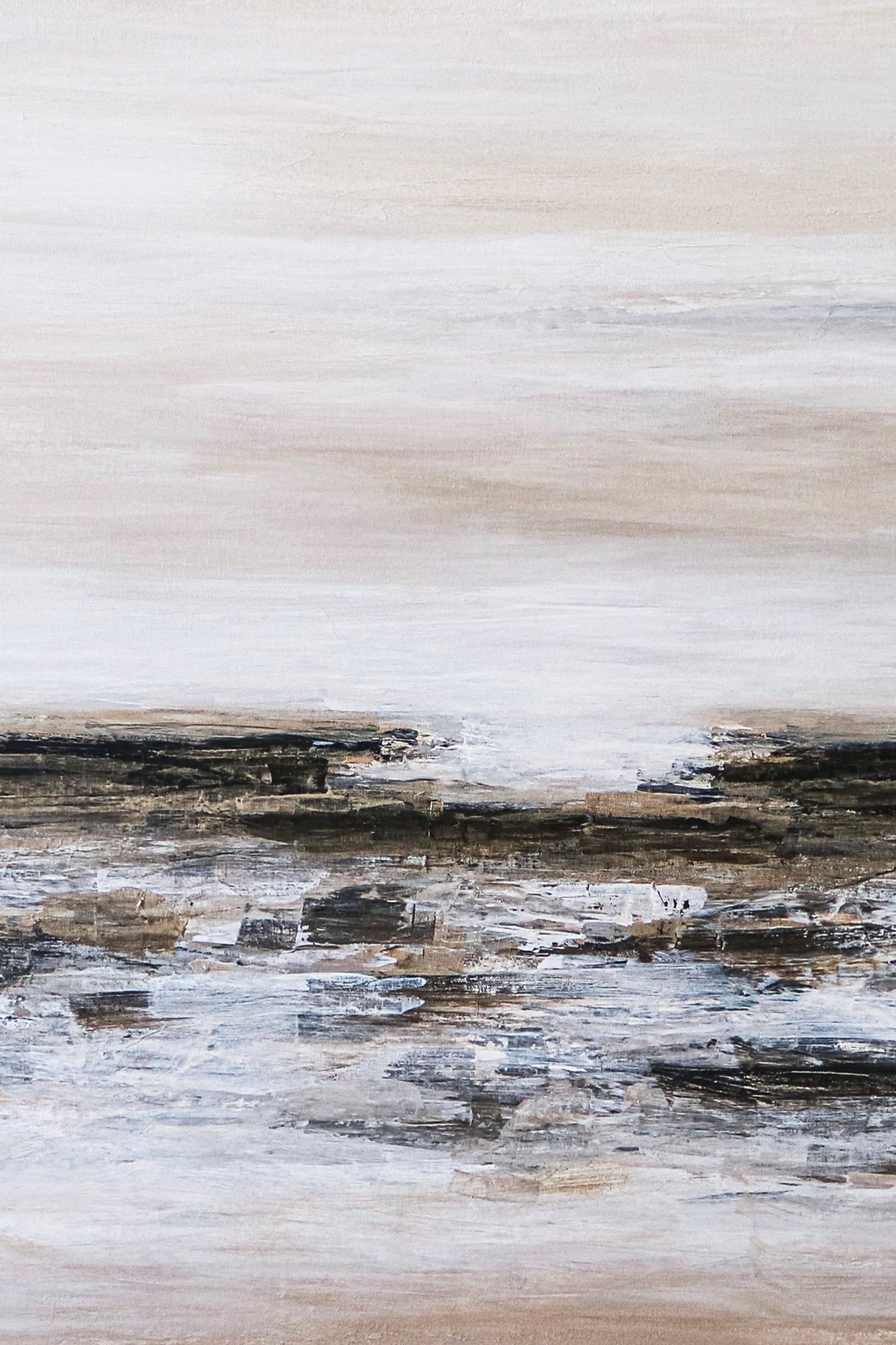 An elegant palette of umber, beige, grey, black, and white creates a subtle dialogue between earth and light. Gentle tonal shifts and layered textures lend depth while maintaining a restrained, minimalist atmosphere. Calm yet commanding, this modern abstract wall art invites pause and contemplation, bringing balance and refined tranquility to contemporary interiors.