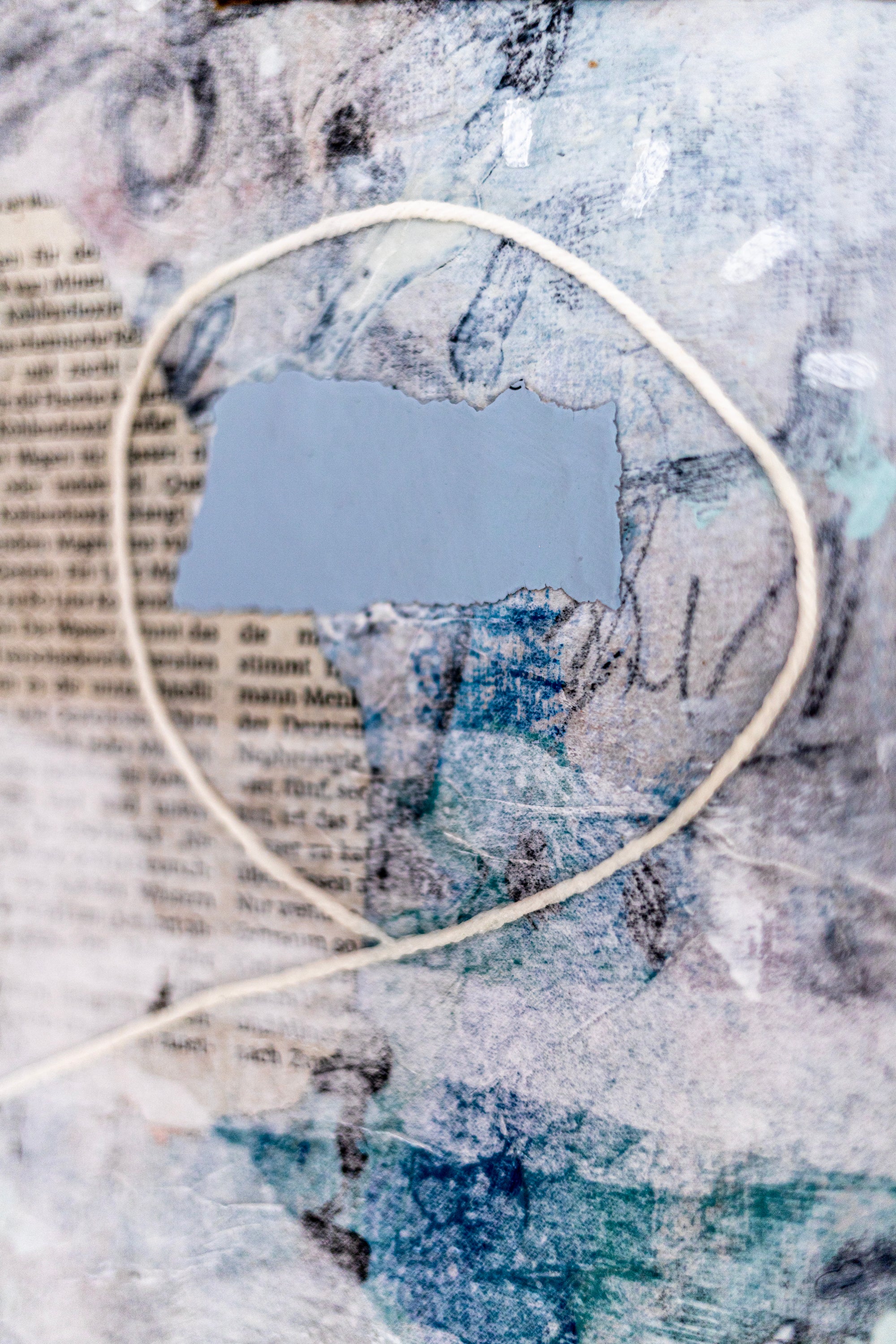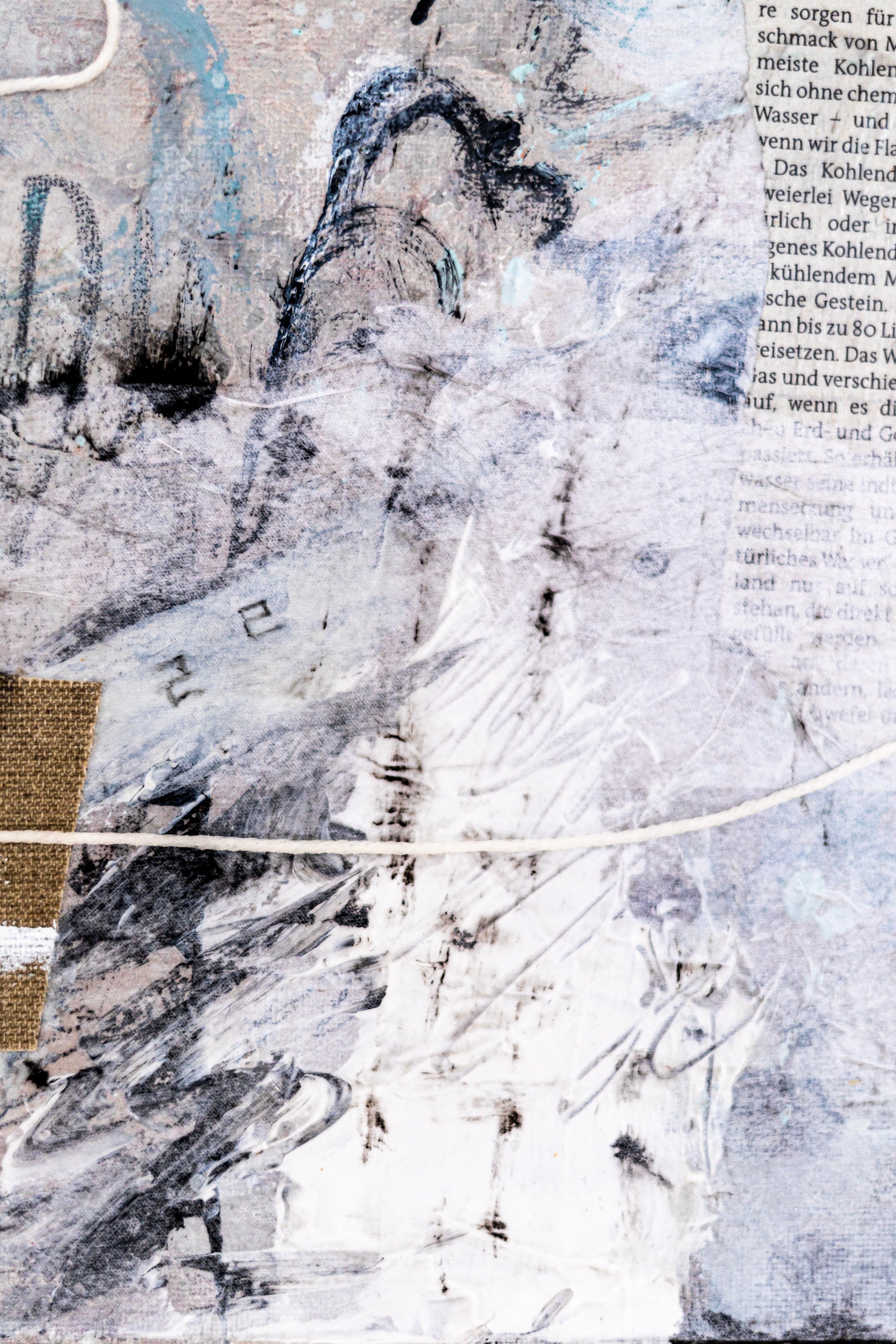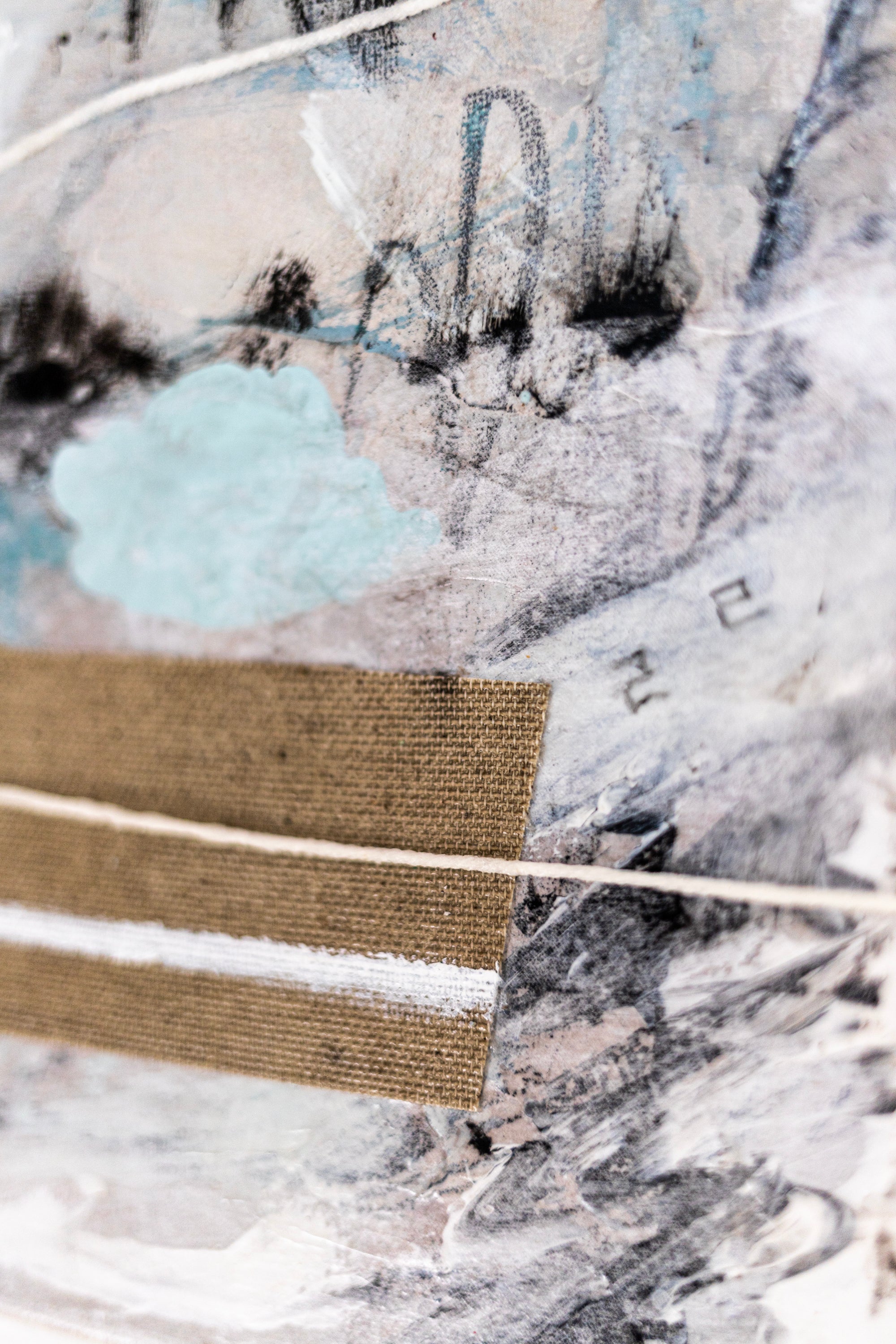 “Mit I” was hand-painted in September 2025. If you choose frame option, you will receive the frame painting in an oak floater frame (overall 17"x17" / 43x43cm, depth 1.5" / 3cm). The composition combines a faded wall-like background with paper and thread, creating an active and layered structure. Bold black and white paint strokes and elements of kraft paper bring contrast and visual tension, resulting in a balanced yet expressive modern aesthetic. Signed on both the front and back and accompanied by a certificate of authenticity, this original art piece adds refined character and contemporary depth to any space.