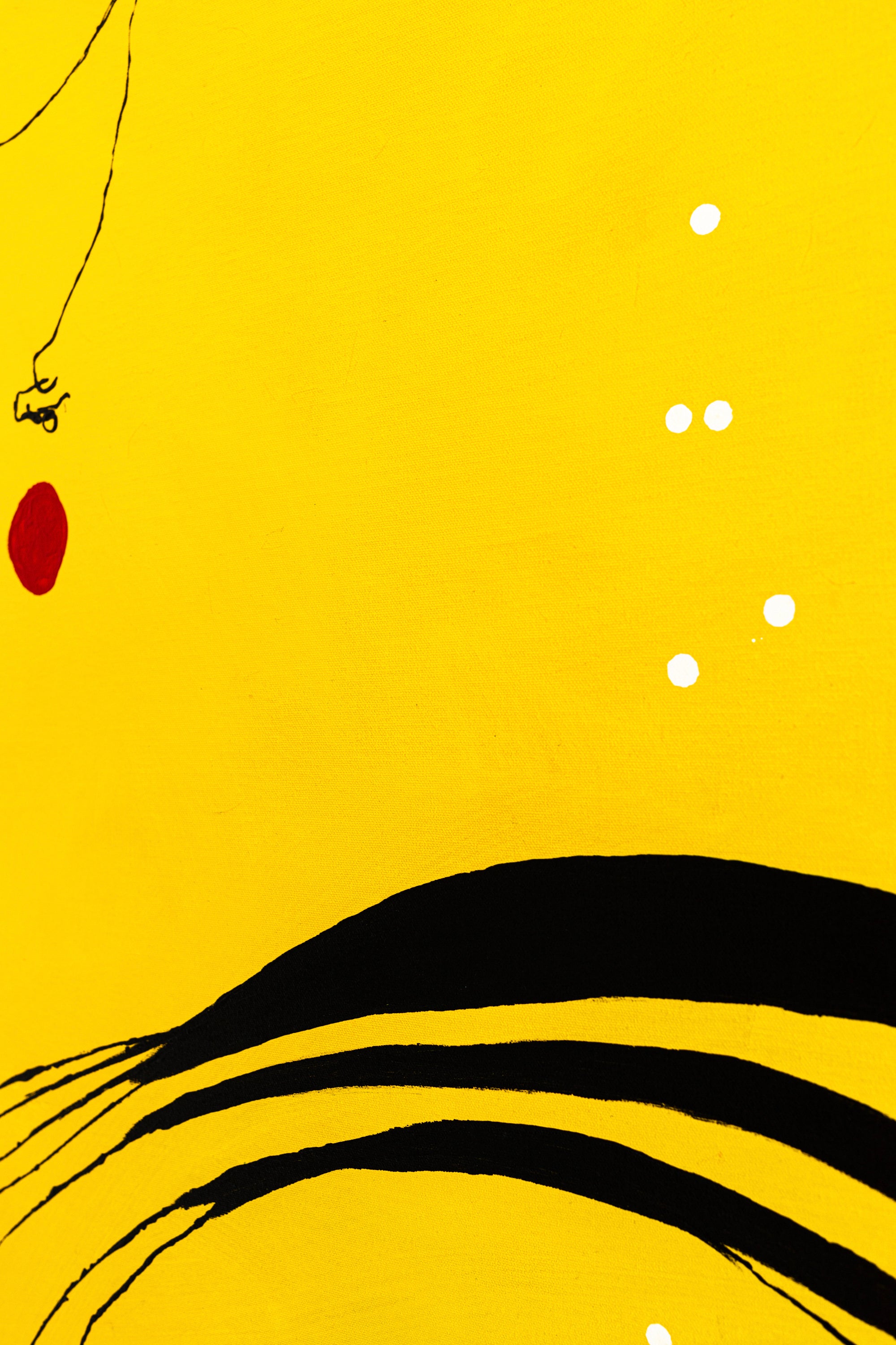 Illuminate your space with "Spring," a modern abstract original painting that encapsulates the vivacity and tranquility of a sunny spring day. Based on a vibrant palette of yellow oil paint, this composition brings to life the essence of spring with added lines and elements that mimic the awakening of nature. The canvas comes alive with the brightness of blooming flowers and the calmness of clear, serene skies. The elements scattered across the canvas interact with the striking yellow backdrop to create an overall feeling of rejuvenation and growth that spring is known for. Allow this piece to usher in a sense of freshness, warmth, and serene delight into your living space, much like the season it's inspired by.